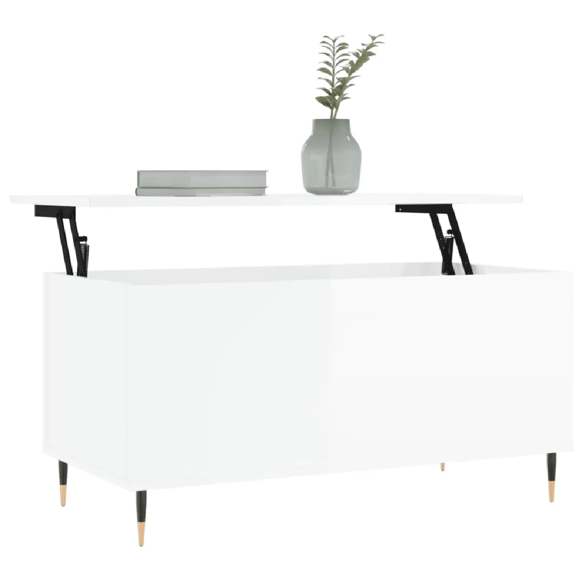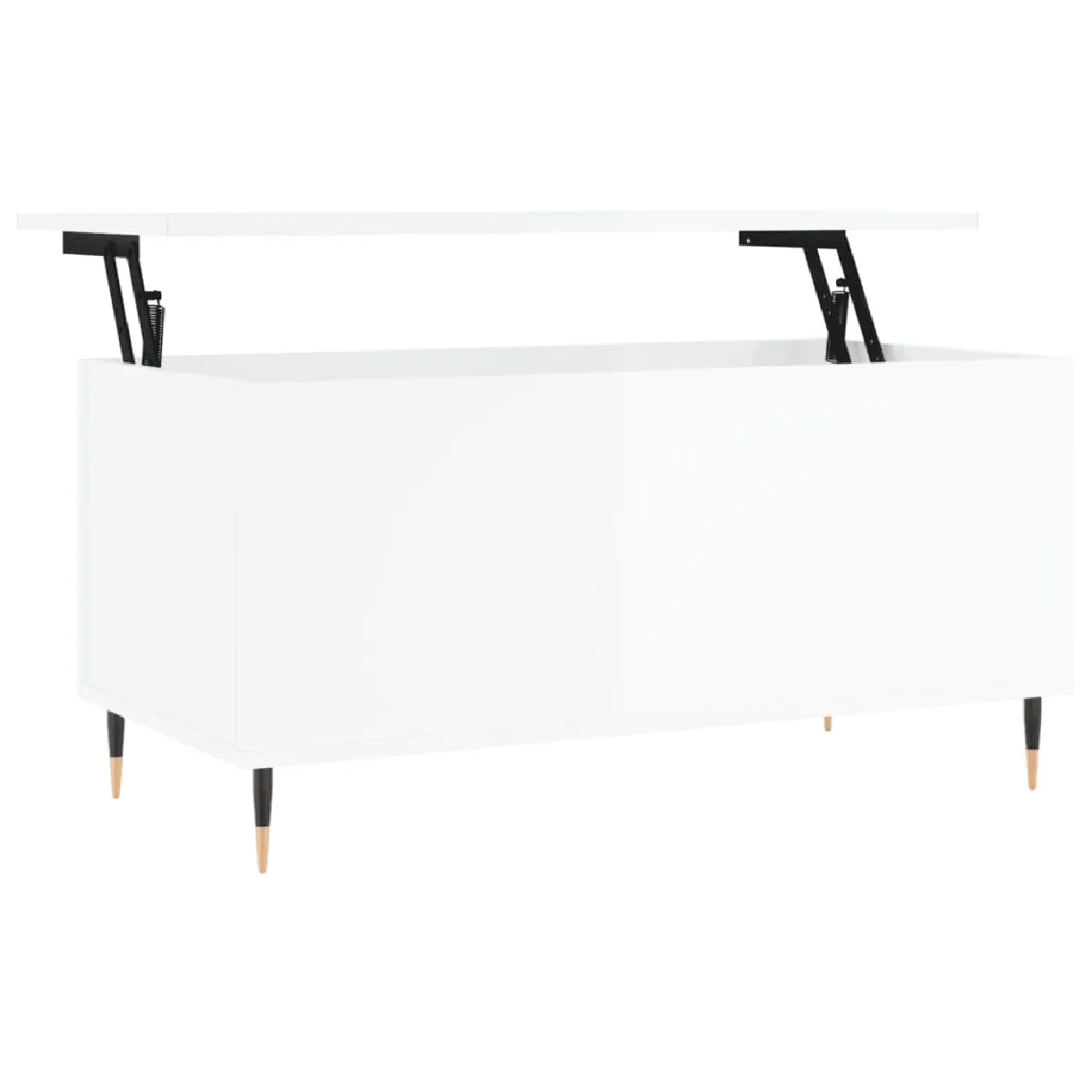 Table basse avec dessus relevable - Blanc brillant - Bois d'ingénierie et métal - Rangements