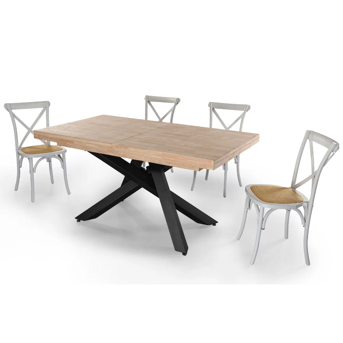 Table à manger extensible en chêne et métal noir