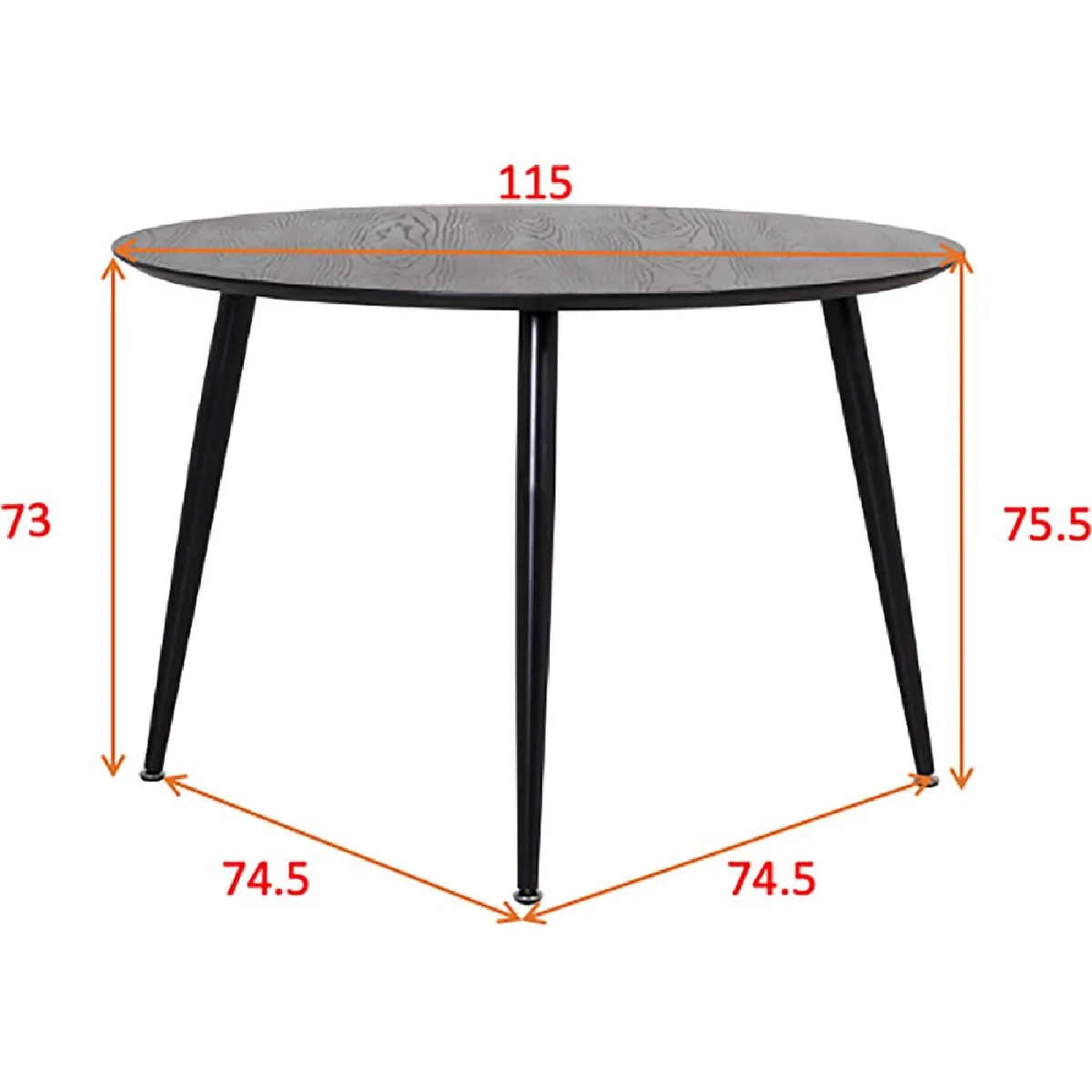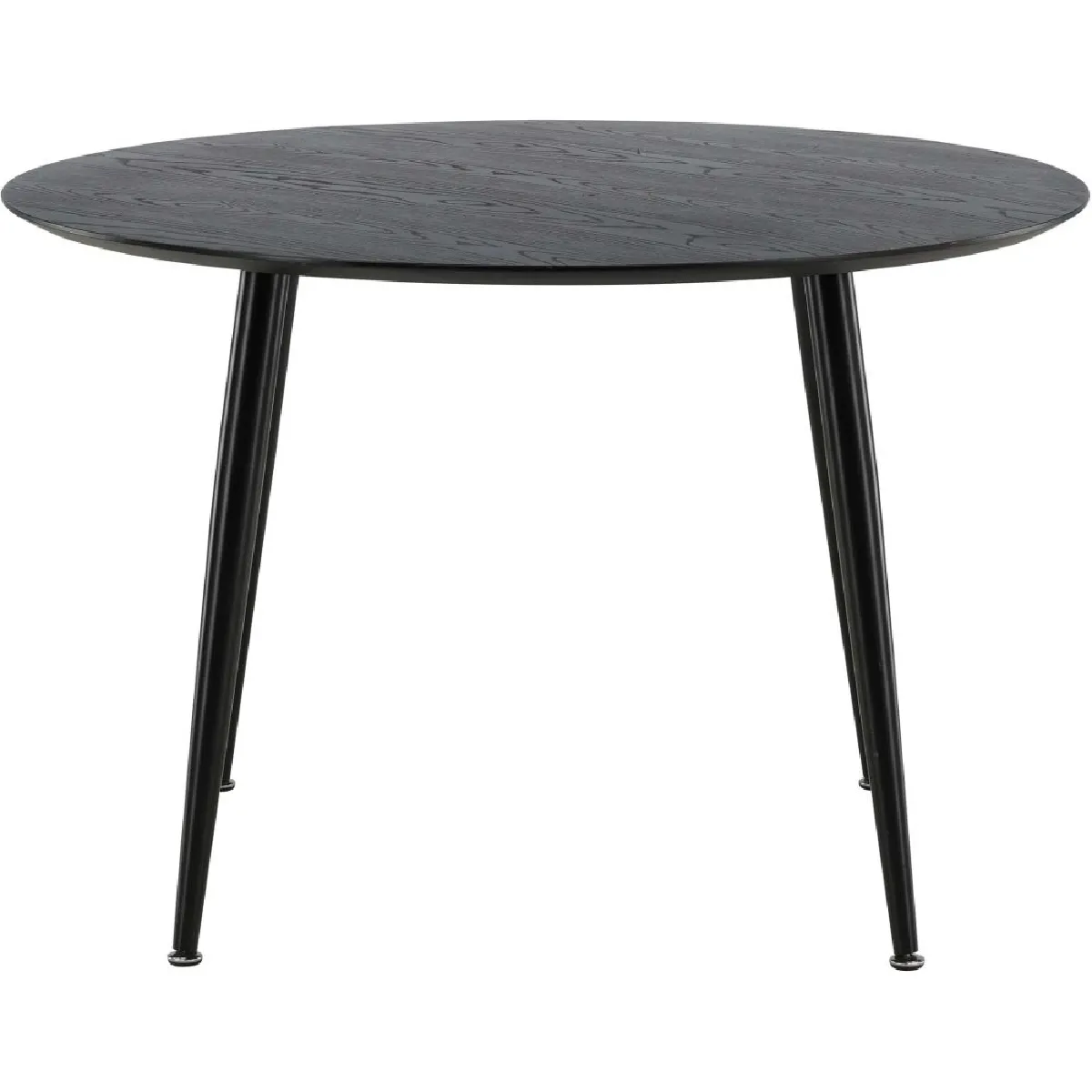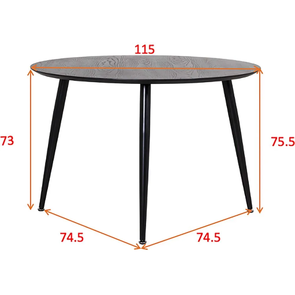 Une surface ronde de 115 cm favorise des échanges fluides et un agencement simple dans des pièces de taille moyenne. Cette table associe un plateau en MDF à la finition homogène et une base en acier pour une stabilité régulière, adaptée aux repas quotidiens comme aux moments de travail léger. La hauteur de 75 cm permet d'accueillir confortablement jusqu'à 4 personnes avec des chaises standards. Sa forme circulaire optimise la circulation et s'intègre dans un séjour ou une cuisine. Le coloris noir crée une présence discrète et coordonnable avec différents sièges et accessoires, sans surcharger l'espace.