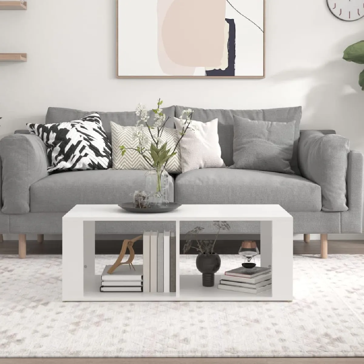 Table basse - Bois d'ingénierie - Blanc - 100 x 50 x 36 cm - 2 étagères de rangement