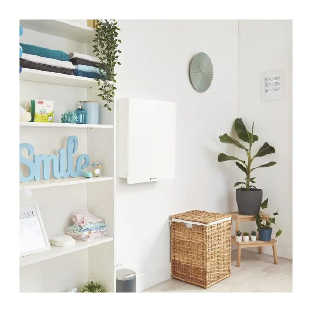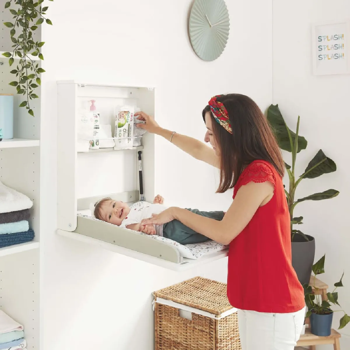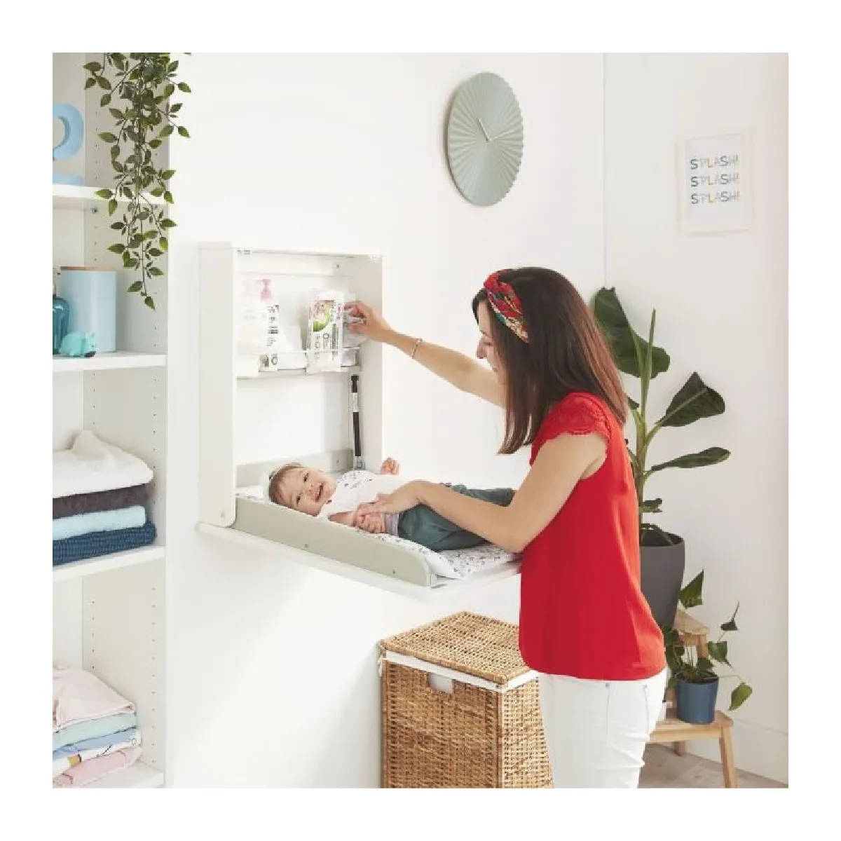 Idéale pour les petits espaces, pratique, robuste et élégante : Badabulle combine toutes ces caractéristiques en un seul produit, la table à langer murale Plouf ! Indispensable pour laver, changer ou habiller votre bébé, la table à langer Plouf facilite le soin quotidien de votre bébé. Avec un fonctionnement sans effort, vous pouvez ouvrir et fermer la table dune seule main en un rien de temps, idéal lorsque vous tenez votre bébé. Son étagère de rangement vous permet de garder à portée de main tout ce dont vous avez besoin pour changer et prendre soin de votre bébé. Et tout reste en place, même quand on la replie. Le matelas à langer dispose dune protection latérale, vous pouvez donc lutiliser en toute sécurité dès la naissance de votre bébé. Le tapis intégré contient un rembourrage souple et est facile à laver. De plus, les motifs amusants constituent une source d'amusement lors du changement de couche. Fabriquée à partir de matériaux de qualité, cette table à langer est robuste, durable et ultra-compacte : seulement 13 cm dépaisseur lorsqu'elle est repliée. Une fois pliée, elle vous permet de gagner beaucoup d'espace. La table offre une solution parfaite et élégante pour les petits espaces où lespace est limité, comme les salles de bain et les chambres à coucher. Très pratique, la table à langer est fournie prête à lemploi et facile à fixer au mur en toute sécurité.