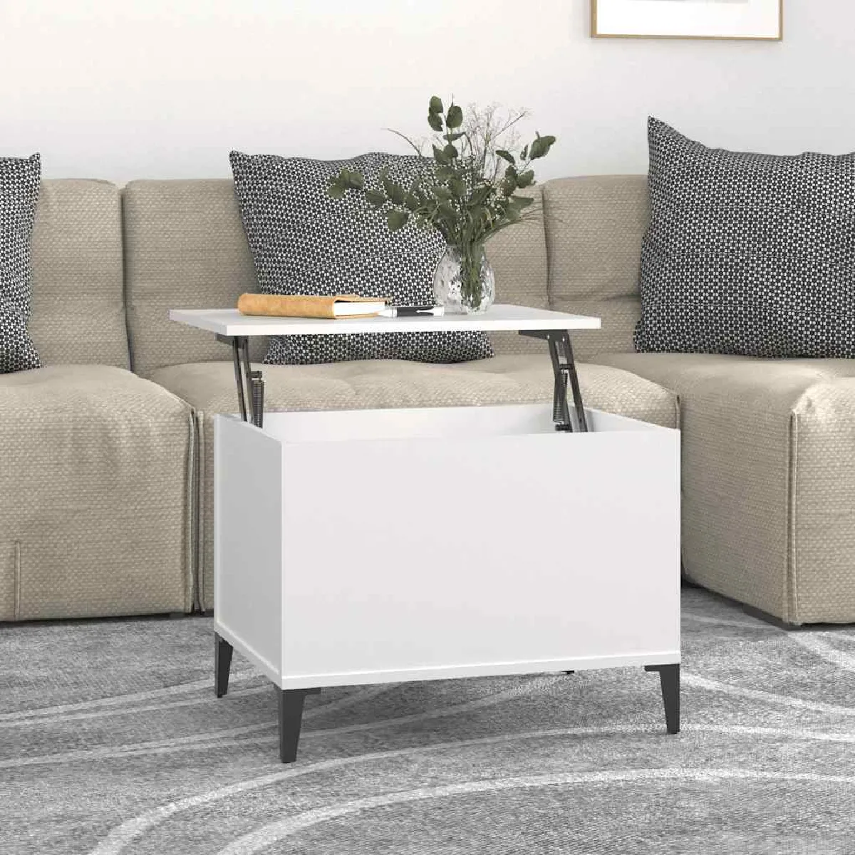 Table basse à plateau relevable - Bois d'ingénierie - Grand rangement - Blanche élégante