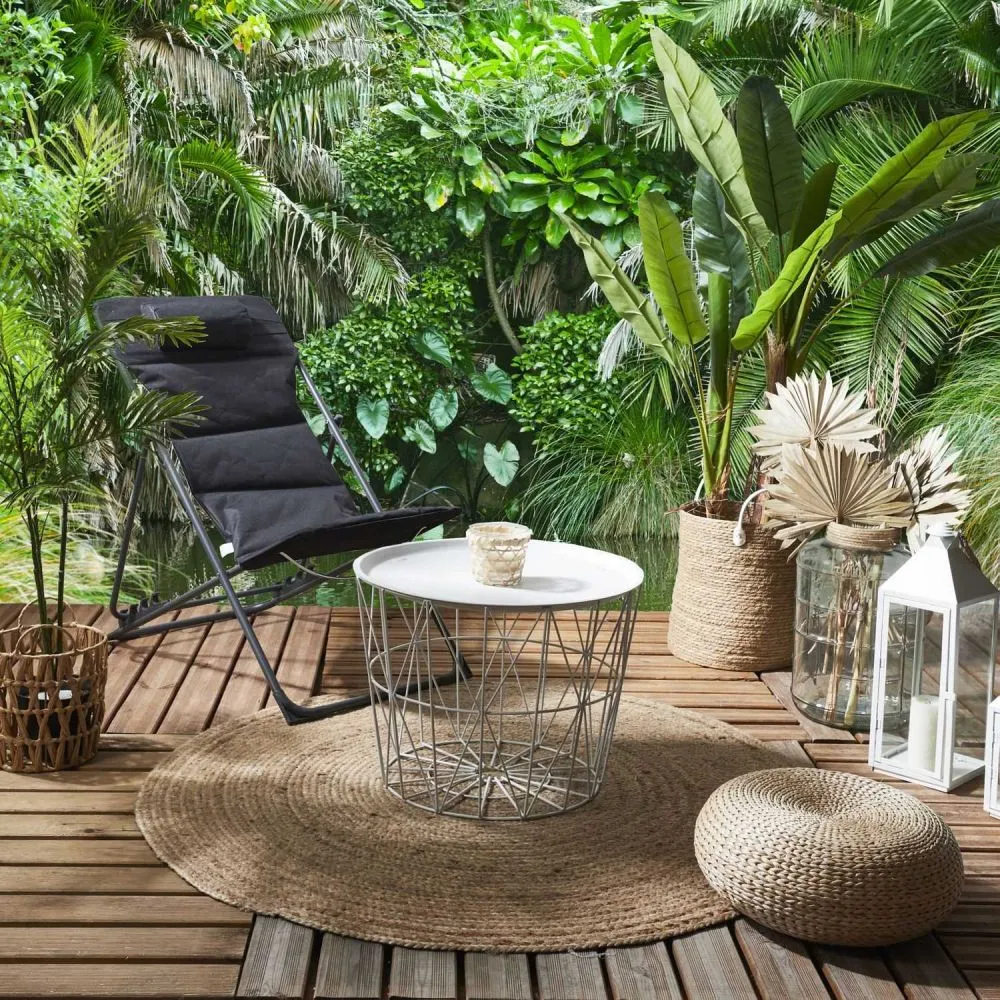 La structure métallique favorise un entretien facile avec un simple chiffon sec. Non pliable et non extensible, elle reste stable une fois en place pour un usage régulier. Le montage est requis et se réalise en étapes simples, afin d'obtenir une table d'appoint ronde et homogène adaptée à deux places assises. Son format de 52,5 × 52,5 cm s'accorde à une circulation fluide autour du siège sans surcharge visuelle.