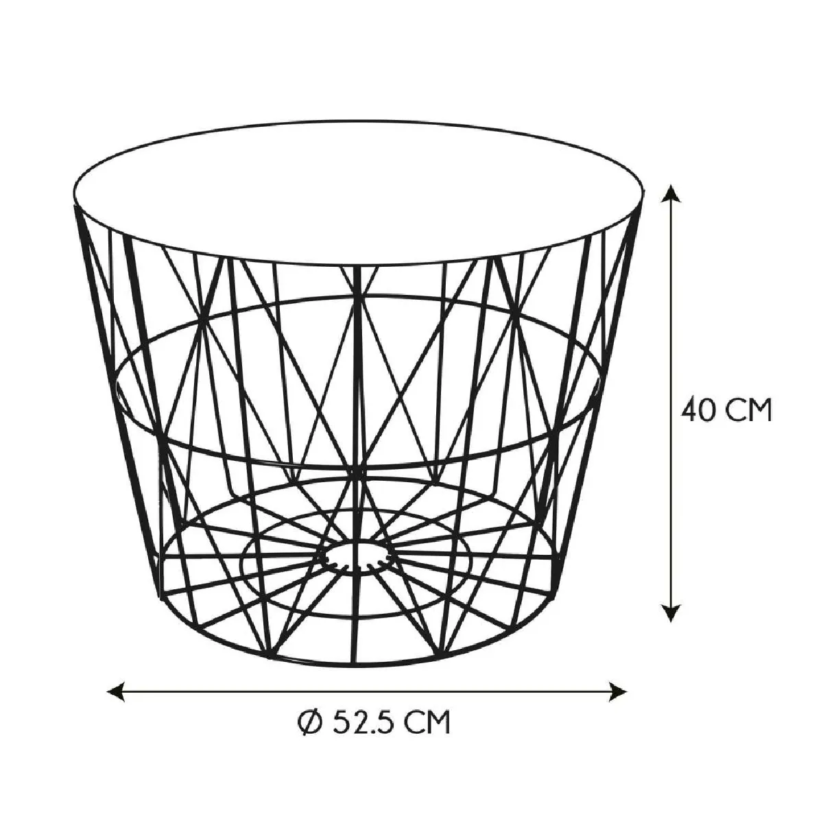 - Dimensions : diamètre 52,5 cm ; hauteur 40 cm