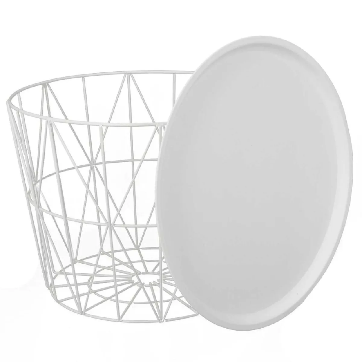 Commentaire vendeur : Informations Techniques : Dimensions : D. 52,5 x H. 40 cm Matières : Métal & Fer Spécificités : Pratique & Utile Table d'Appoint Forme Ronde Avec Couvercle Poids : 3,9 kg Couleur : Blanc