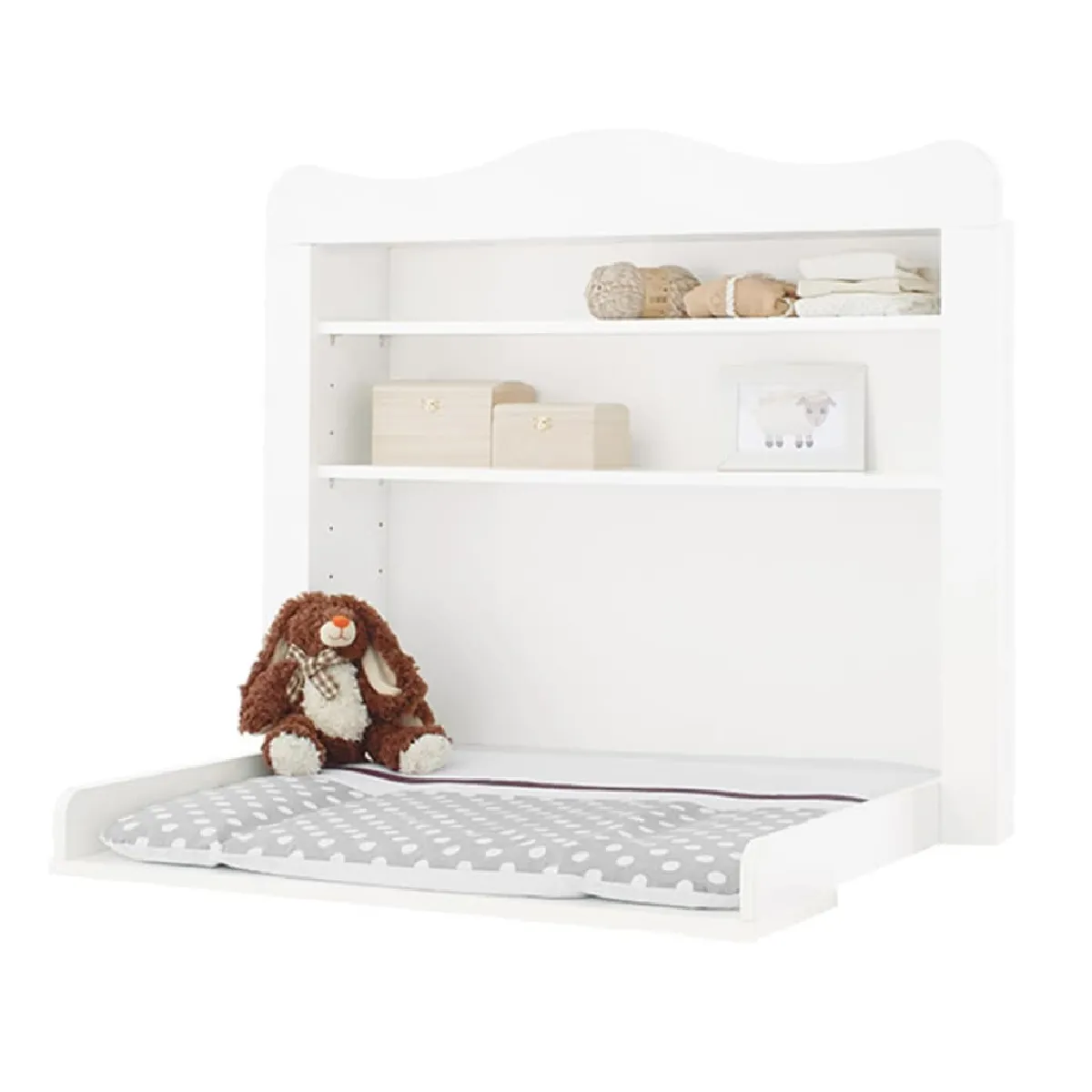 Veuillez noter que la livraison comprend 2 étagères, pas le meuble à langer ni de matelas ou la décoration du visuel