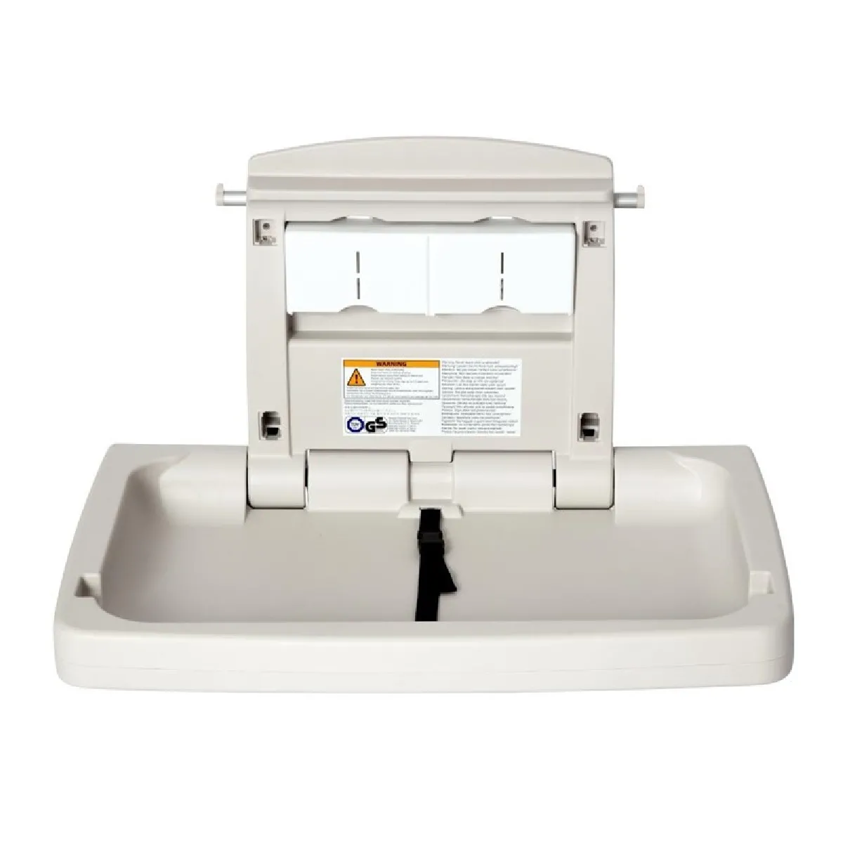 Le mécanisme pliant horizontal offre un gain de place immédiat tout en assurant une surface stable pour le change. Fabriquée en polypropylène, cette solution combine structure robuste et entretien facilité. La protection intégrée aide à limiter le développement de bactéries, ce qui contribue à réduire les sources de taches et d'odeurs. Les dimensions ouvertes de 55.7 x 91.1 x 71.8 cm s'adaptent aux espaces d'accueil et sanitaires. Une ceinture ajustable sécurise l'enfant pendant l'utilisation. Les crochets latéraux permettent de garder le sac à portée de main pour un geste fluide. Le design compact se replie pour libérer l'espace lorsque la table n'est pas utilisée.