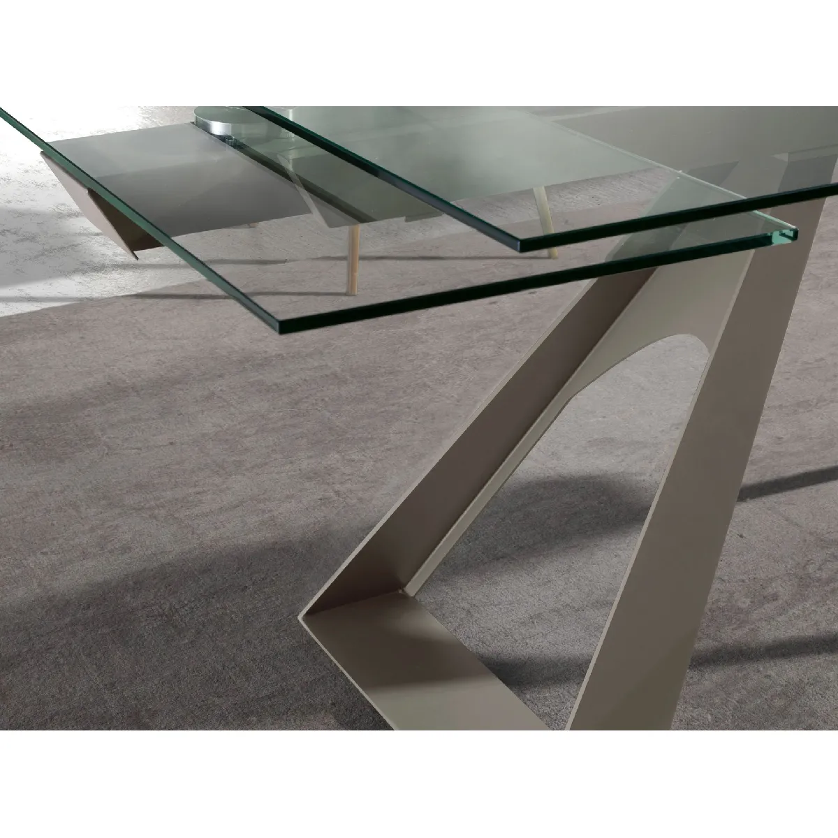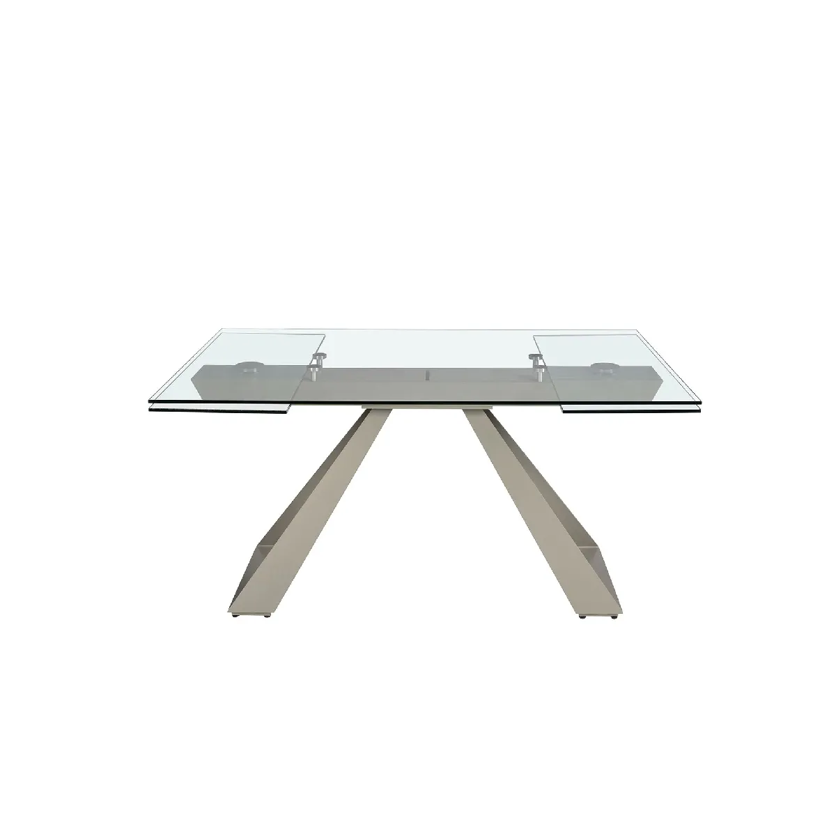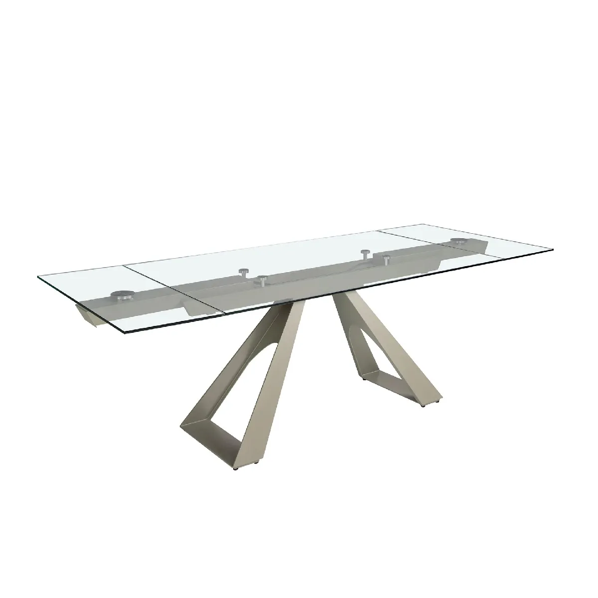 Angel Cerda Table de salle à manger rectangulaire à rallonge en verre trempé et acier gris taupe |