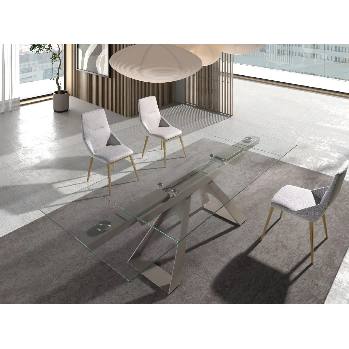 Table de salle à manger rectangulaire à rallonge en verre trempé et acier gris taupe modèle 1125 Angel Cerdá S.L.