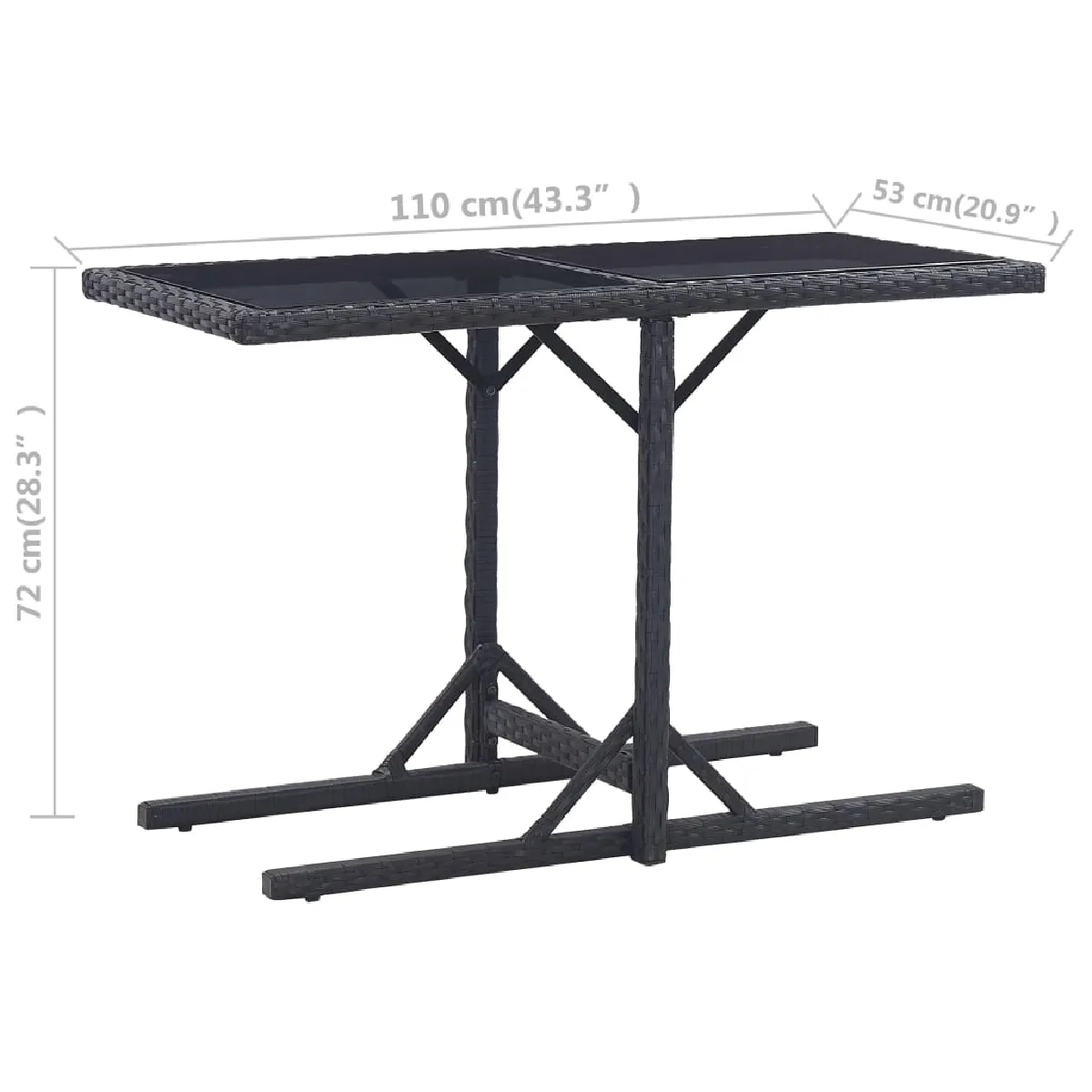 Table de jardin - Résine tressée et verre trempé - 110 x 53 x 72 cm
