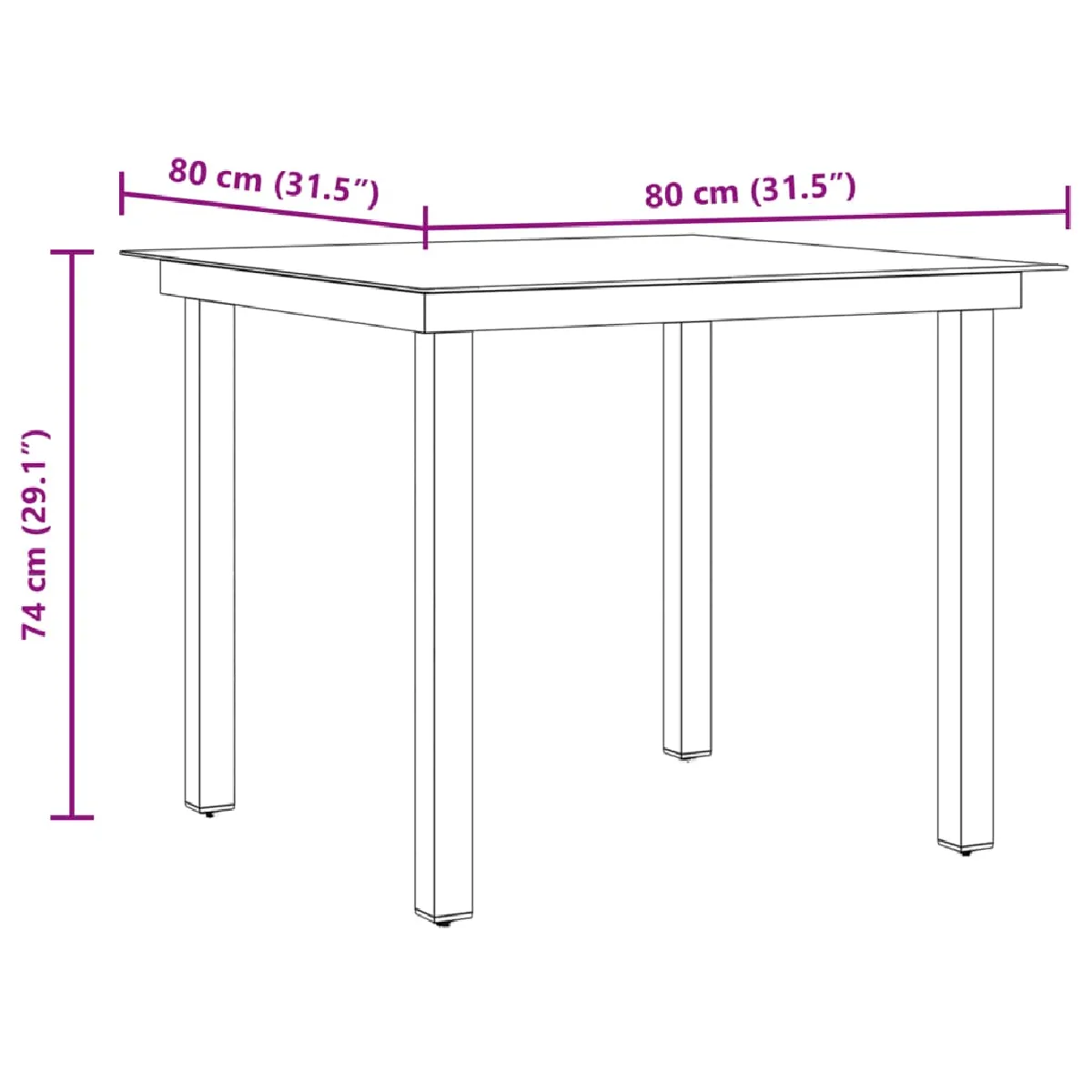 - Dimensions de la table : 80 x 80 x 74 cm (L x I x H)