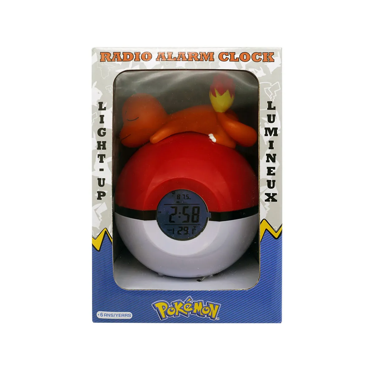 Radio-réveil Pokémon Salamèche - Écran LCD - Affichage digital - Lampe LED - Radio FM - Alarme