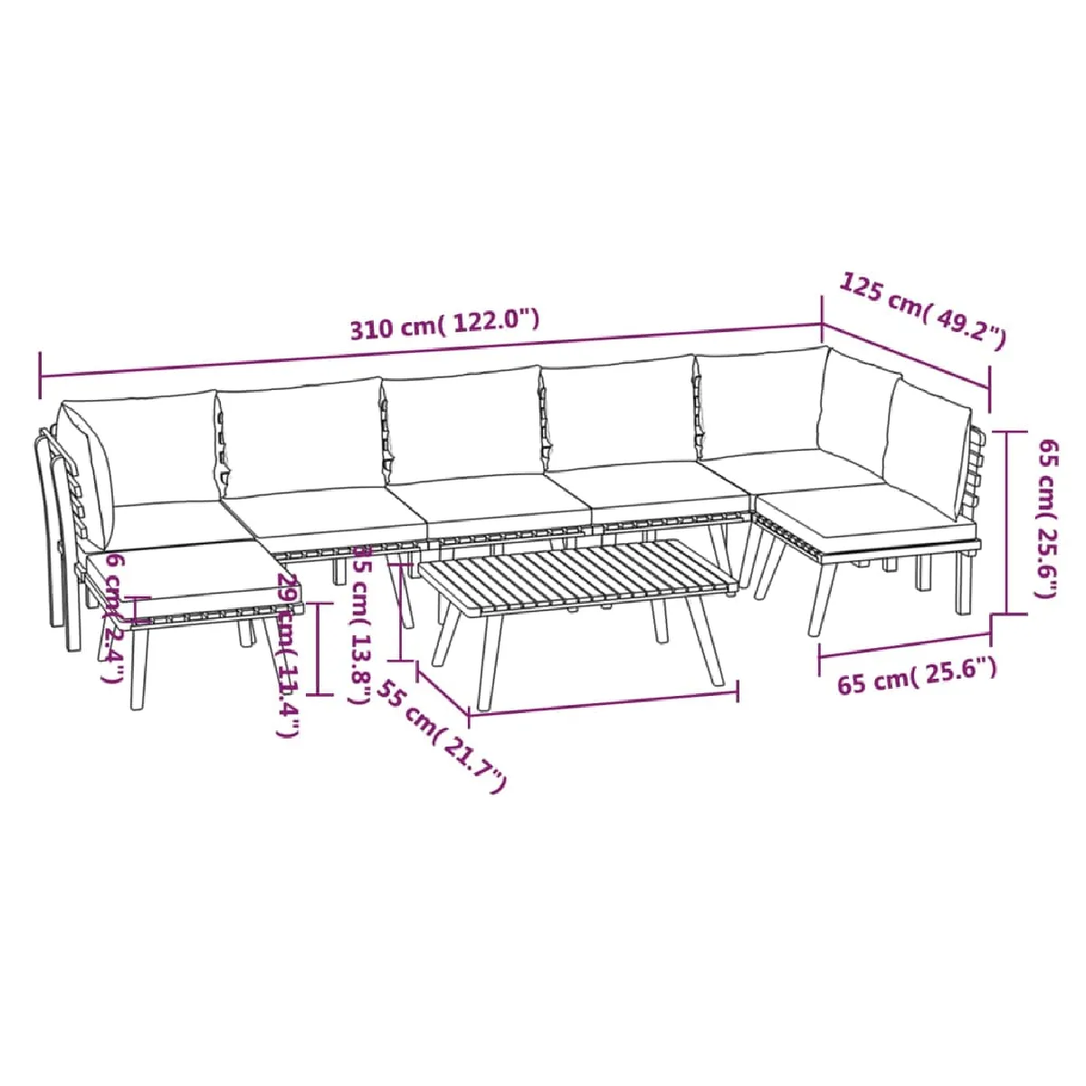 Salon de jardin modulaire - Bois d'acacia massif - Coussins gris foncé et blancs