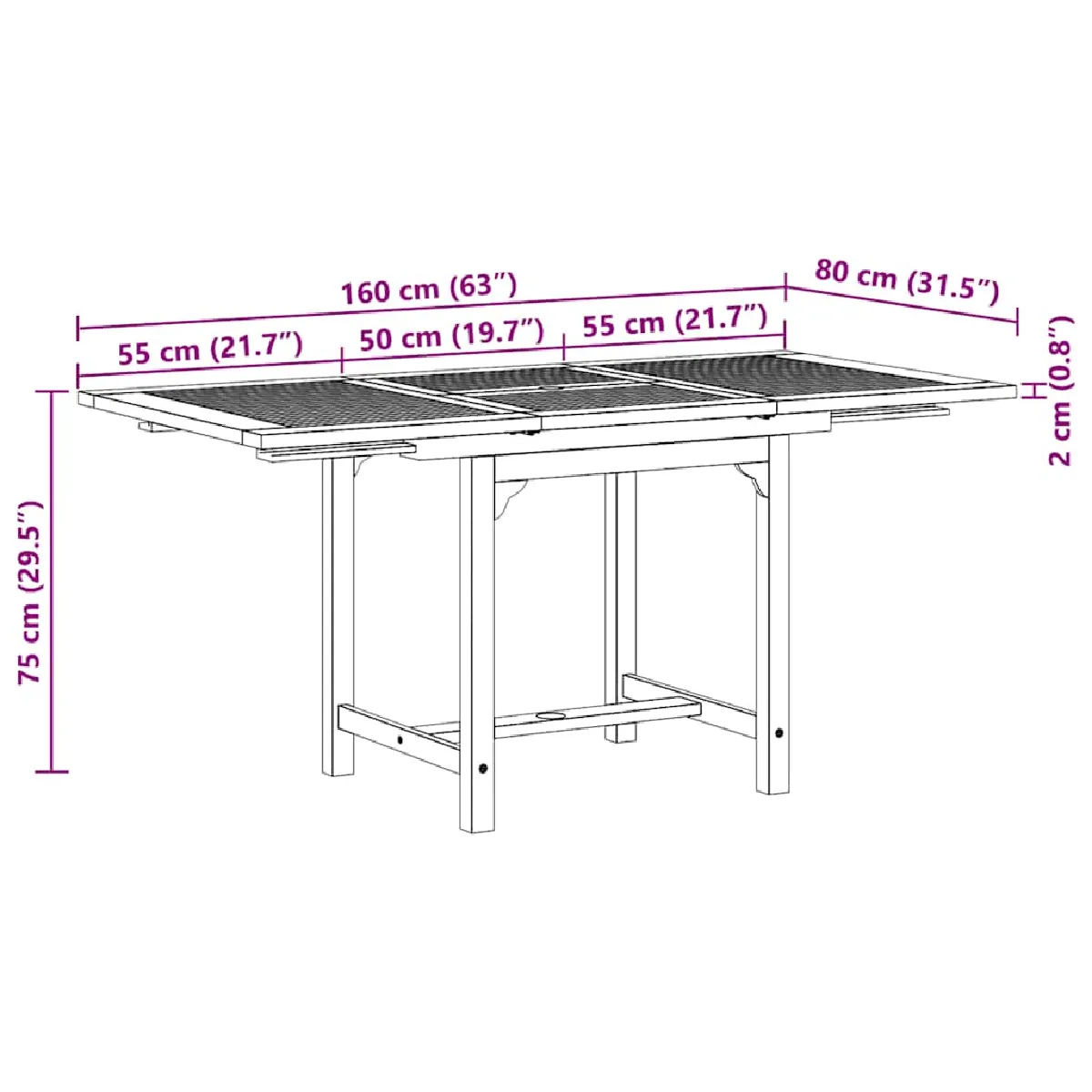 Ensemble à manger de jardin - Bois de teck - Extensible - Table 110-160x80x75 cm