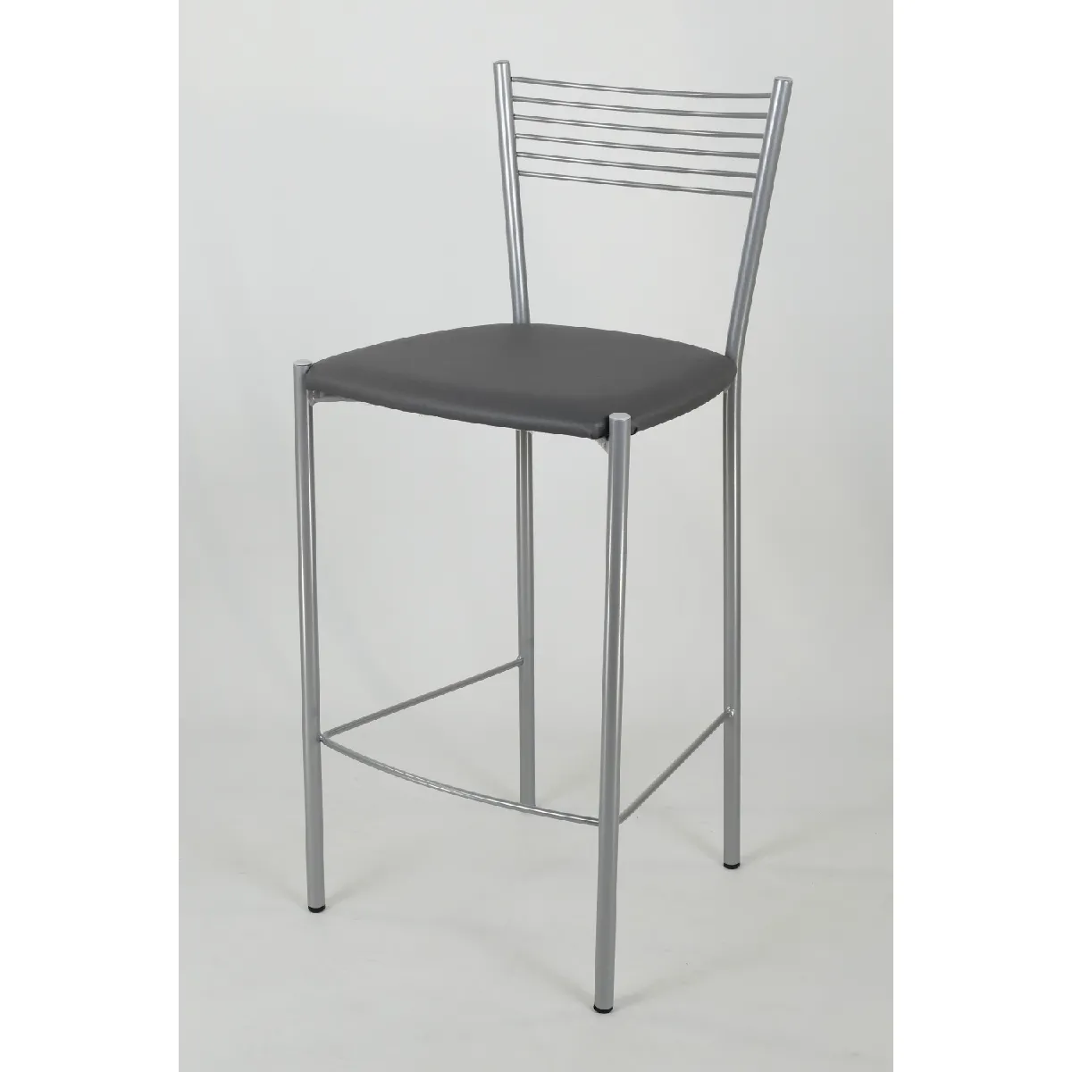 Le tabouret modèle Elegance a une structure en acier peindré aluminium, avec une assise en cuir artificial, coleur gris foncé. La réalisation est complètement artisanale, realisée en Italie. Les produits qui sont utilisés et le travail sont garantie d'un tabouret de qualité. Mesures: hauteur 93 cm , largeur dossier 37 cm , profondeur assise 35 cm , hauteur assise 64 cm , largeur 39.5 cm