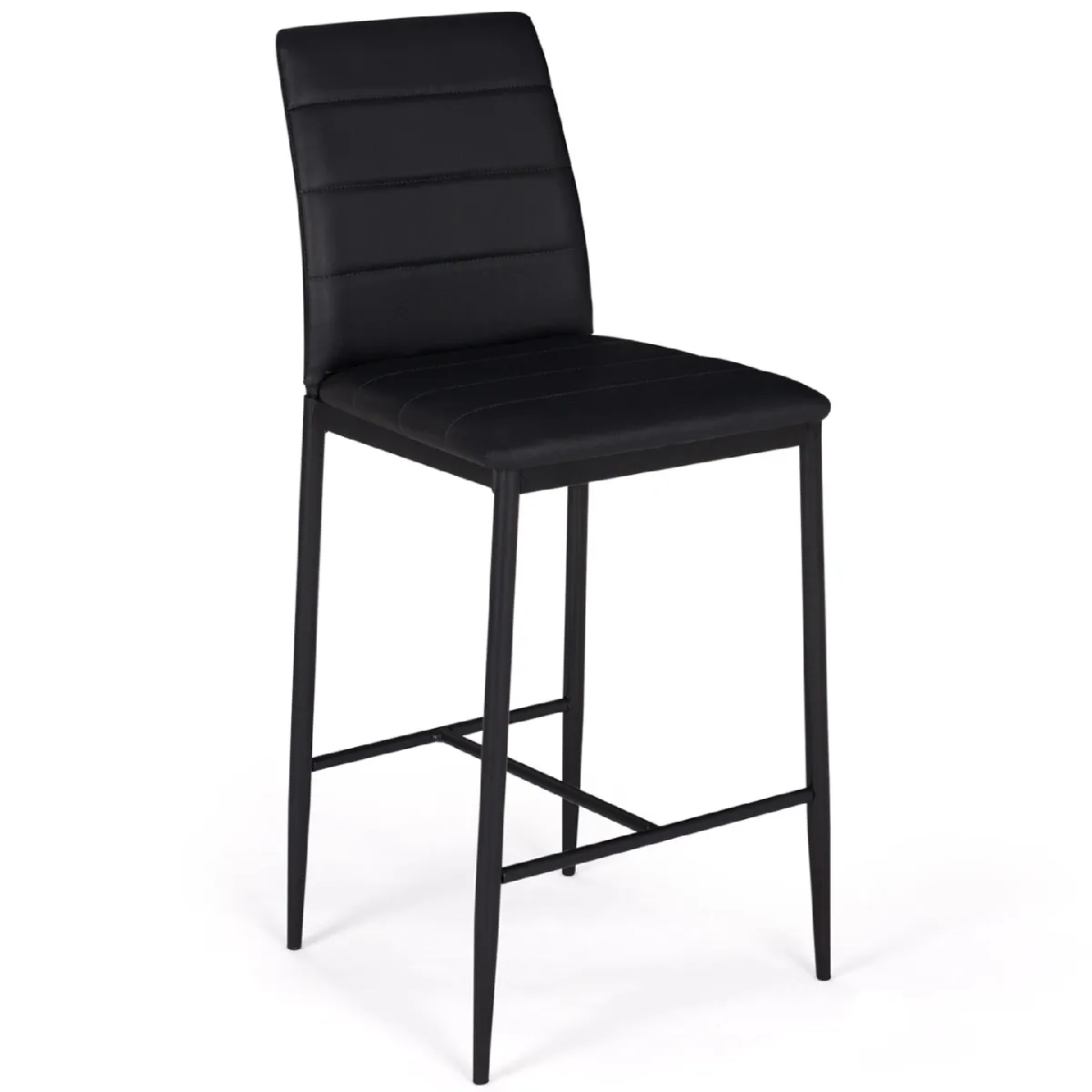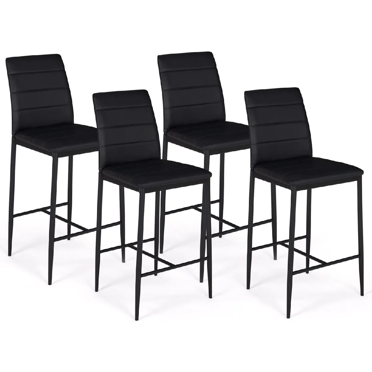 Lot de 4 tabourets - PVC noir - Dossier haut - Repose-pieds - Structure métal robuste
