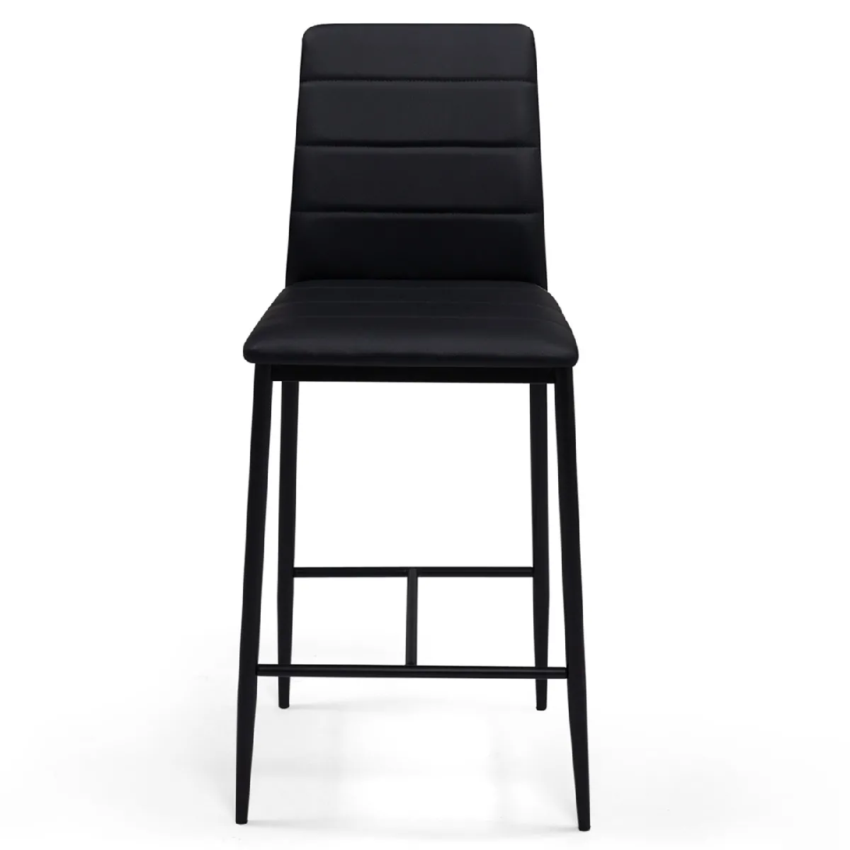 Le lot de 4 tabourets ROMANE noir s'associera idéalement avec votre décoration intérieure. Sa hauteur d'assise de 65 cm et son dossier vous font profiter d'une réelle chaise de bar confortable. Le revêtement en PVC noir est parfait pour les pièces de vie. Cuisiniez sans vous soucier des taches, la matière de votre tabouret et son coloris sont facilement nettoyable. Le dossier du tabouret de 35 cm de hauteur vous assure un bon maintien une fois assis. De plus le tabouret ROMANE est muni d'un discret repose-pied. Profitez de vos repas confortablement installé sur une assise et un dossier ergonomiques en PU rembourrés. La structure en métal du tabouret vous offre une robustesse et une meilleure stabilité d'assise. Son design moderne aux couleurs sobres vous propose tous les bénéfices d'une chaise à hauteur de vos ilots et tables hautes.N'hésitez-plus et laissez le confort et la modernité investir votre cuisine ! Dimensions des tabourets ROMANE noir Dimensions totales : Longueur 43 cm x largeur 52 cm x Hauteur 100 cmHauteur d'assise : 65 cmDimensions assise : L.43 x l. 39 cmHauteur du dossier : 35 cmPieds métalAssise : revêtement PVC rembourré noirÀ monter soi-même Retrouvez l'ensemble de nos tabourets sur notre boutique en ligne.