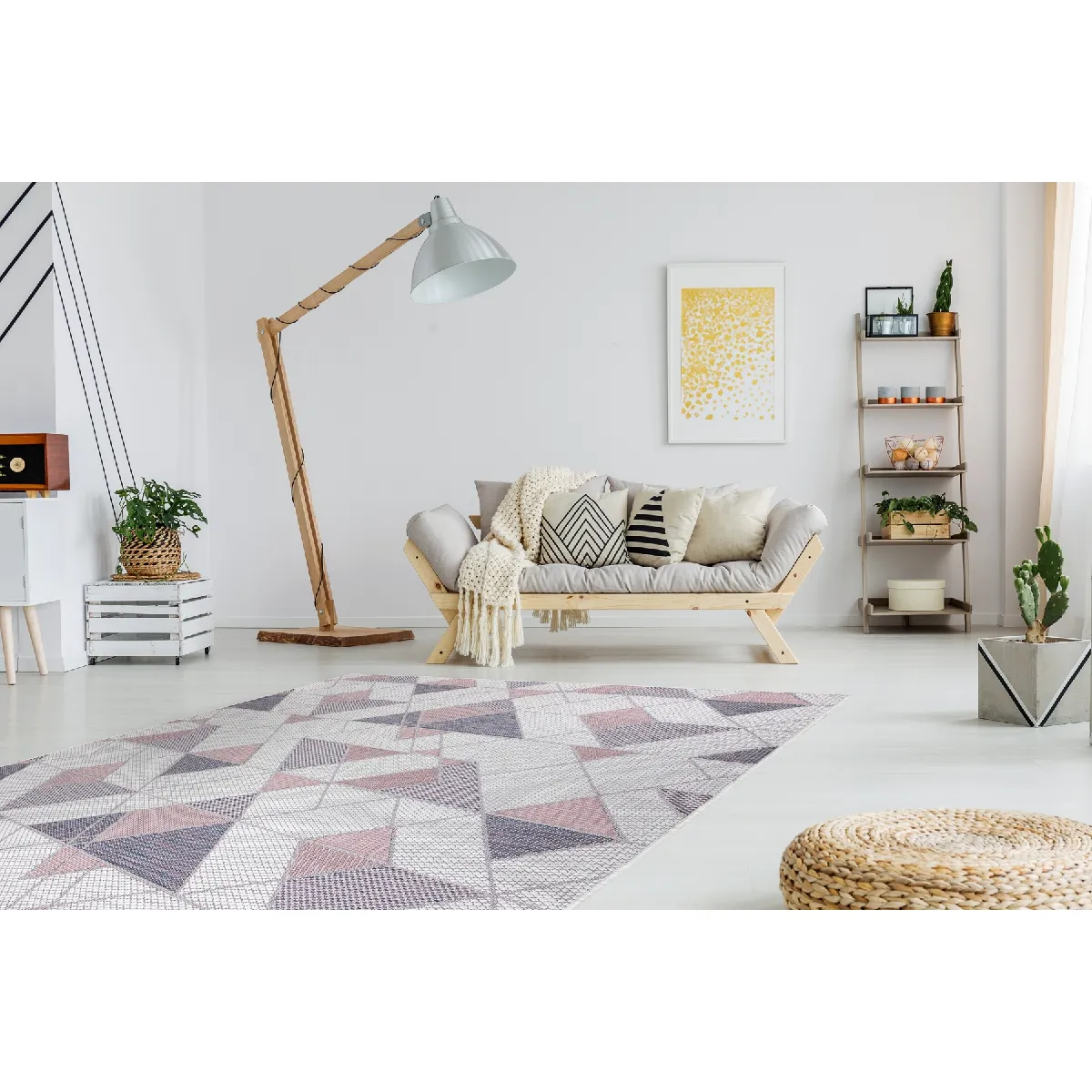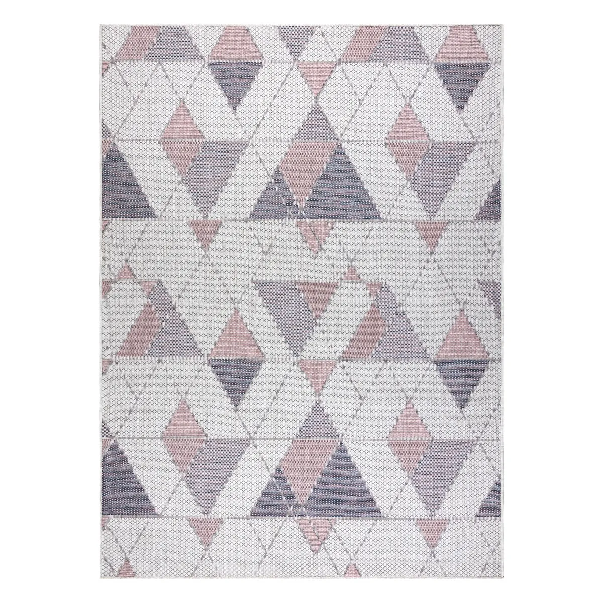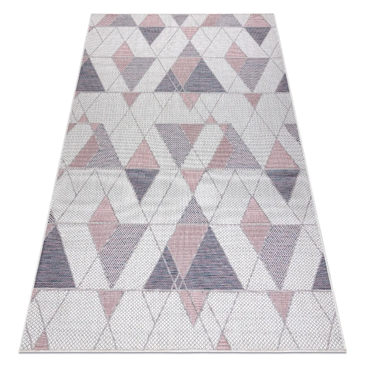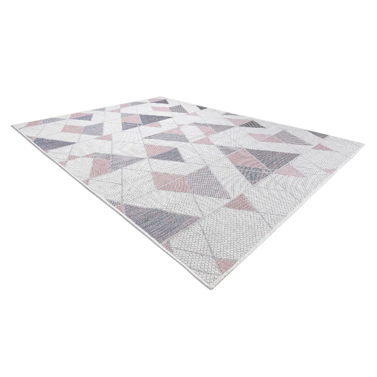 Tapis tissé à plat - Résistant aux intempéries - Ecru et rose - 160 x 220 cm
