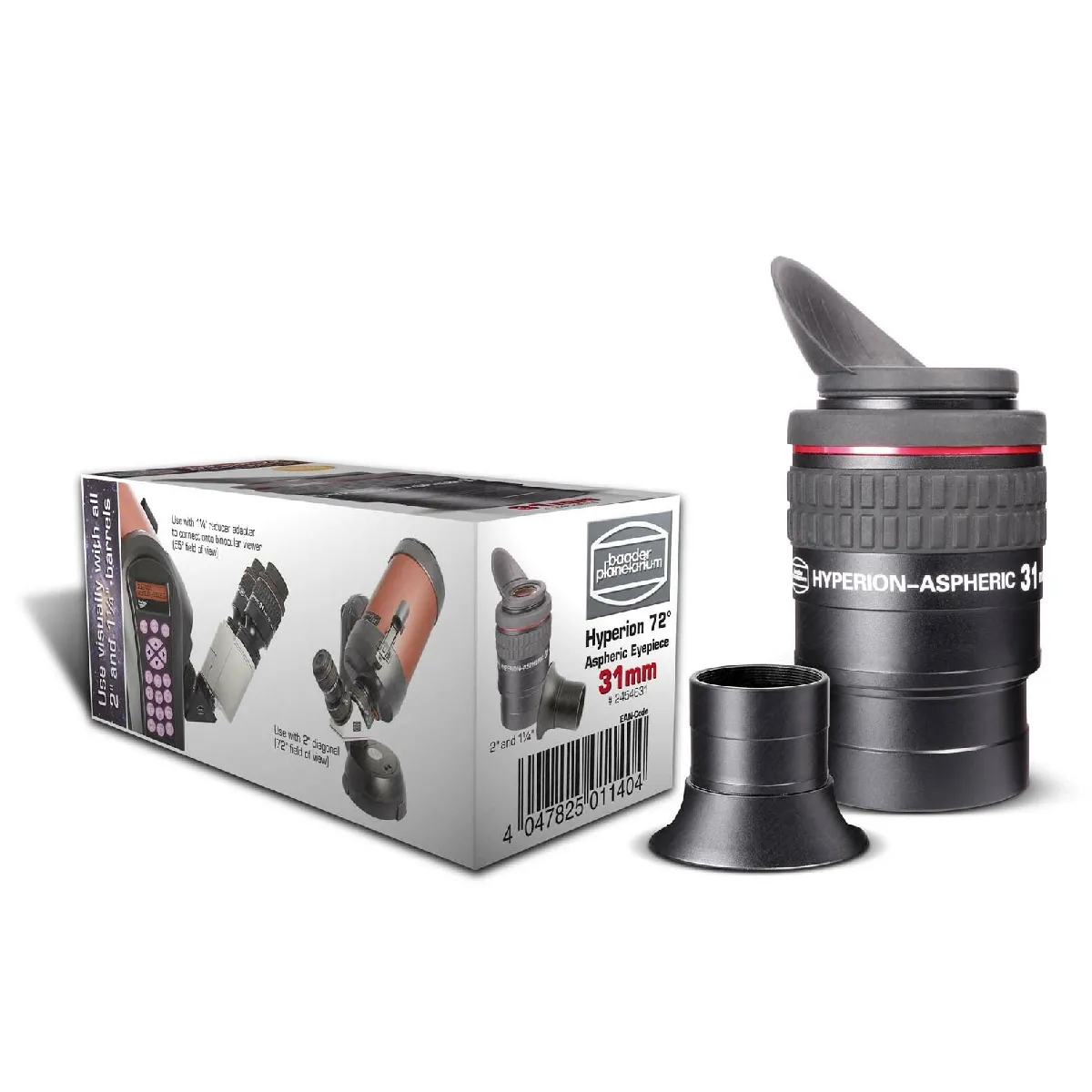 - Oculaire asphérique Hyperion de 31 mm, grand angle de 72° pour le plus grand champ de vision réel possible