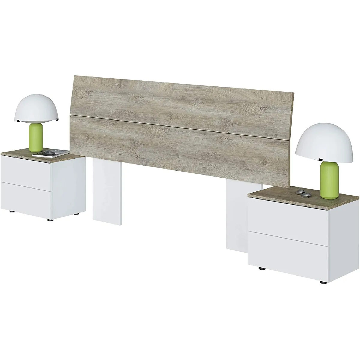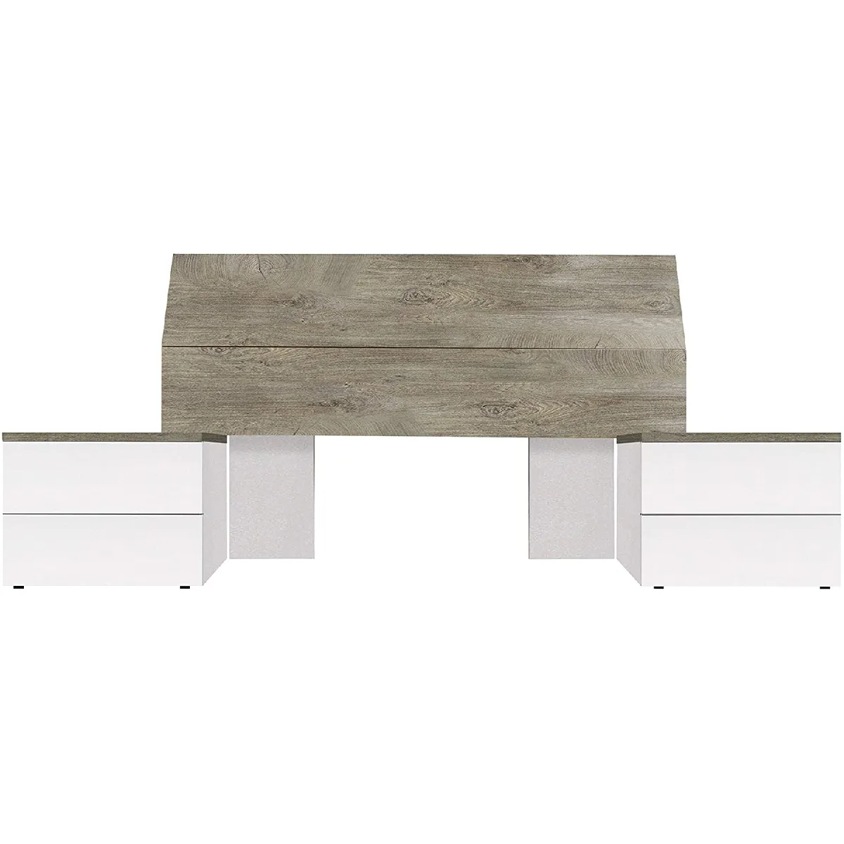 Tête de lit avec chevets pour lit double, finition blanc artic / chêne