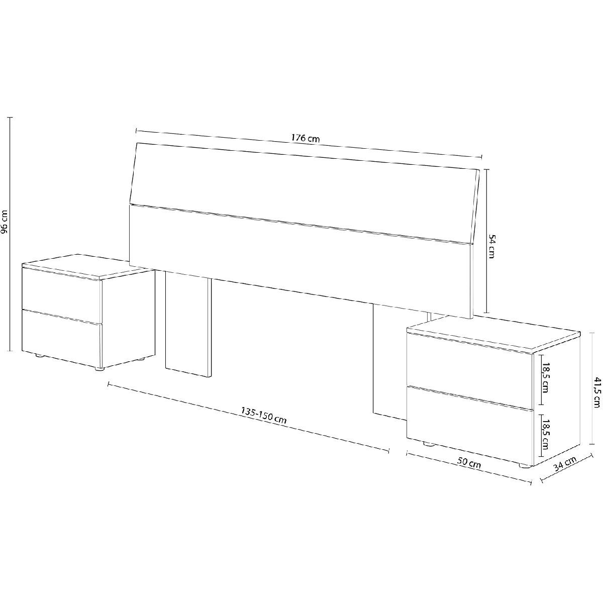 Conçu pour les lits de 135 à 150 cm, il limite les décalages entre sommier et chevets, et maintient une cohérence d'alignement entre les éléments. Les plateaux latéraux accueillent lampe, réveil ou livre, afin de garder les essentiels à portée de main. La structure en panneau de particules de haute densité assure une assise stable au mur et une bonne tenue du plan. Poids total de 39 kg pour une mise en place solide ; montage requis par l'utilisateur.