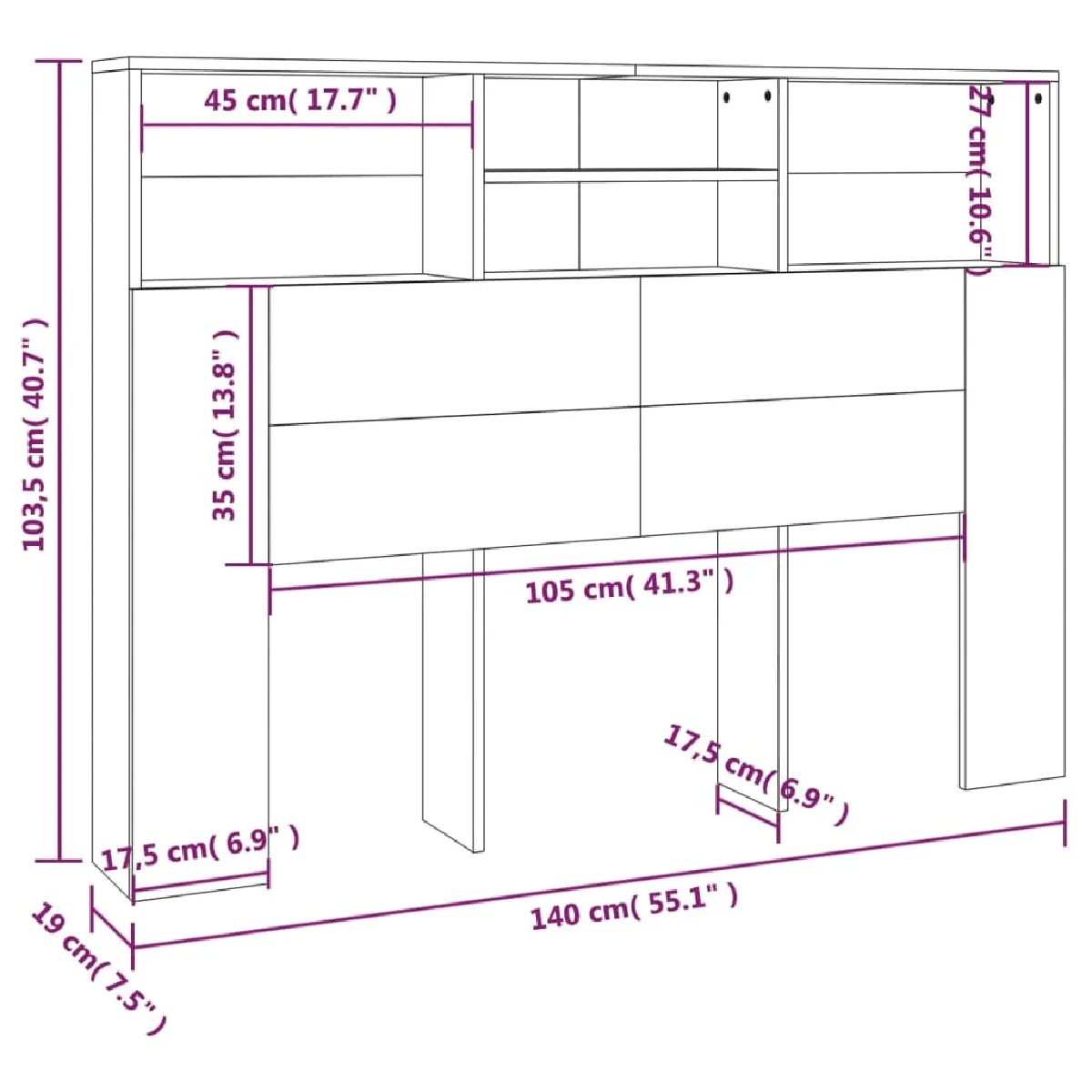 Armoire de tête de lit avec 4 compartiments - Bois d'ingénierie - Dimensions 140x19x103,5 cm