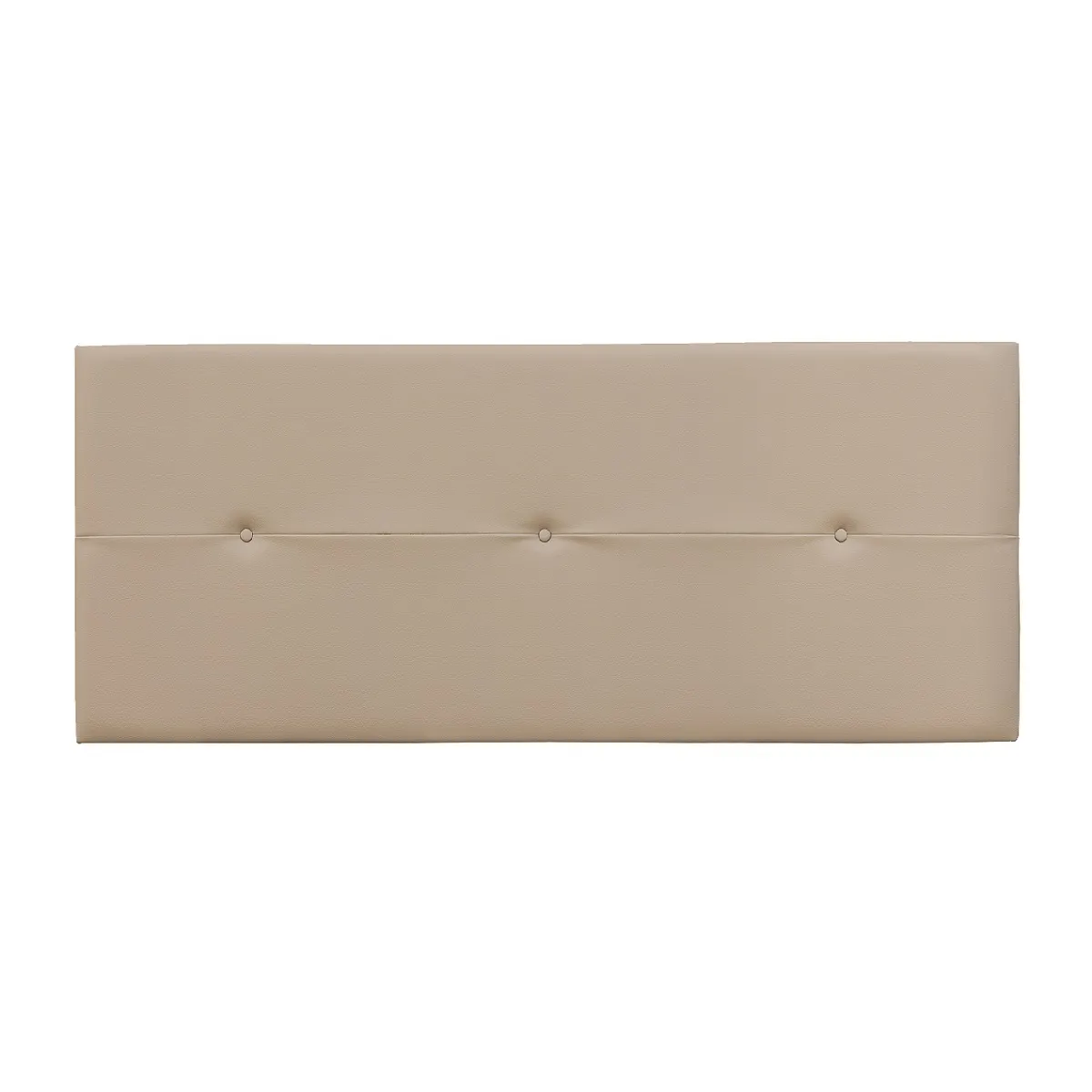 Le revêtement en similicuir beige à l'aspect uniforme apporte une finition sobre et lumineuse, idéale pour harmoniser la parure de lit et le mobilier existant. Sa faible épaisseur de 4 cm libère l'espace autour du couchage tout en assurant une surface d'appui agréable pour s'adosser. La hauteur de 55 cm crée un cadre visuel propre au-dessus du sommier sans alourdir la chambre.