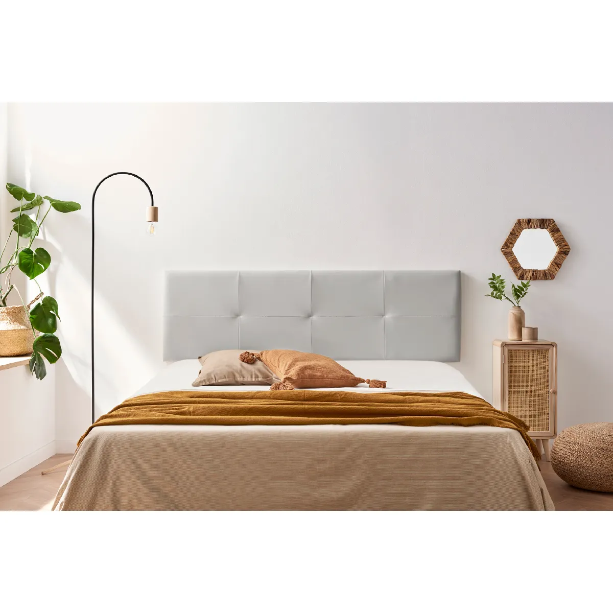 Tête de Lit Tapisée ALTEA Simili cuir 170x50x5 cm - Gris Clair - Moonia |