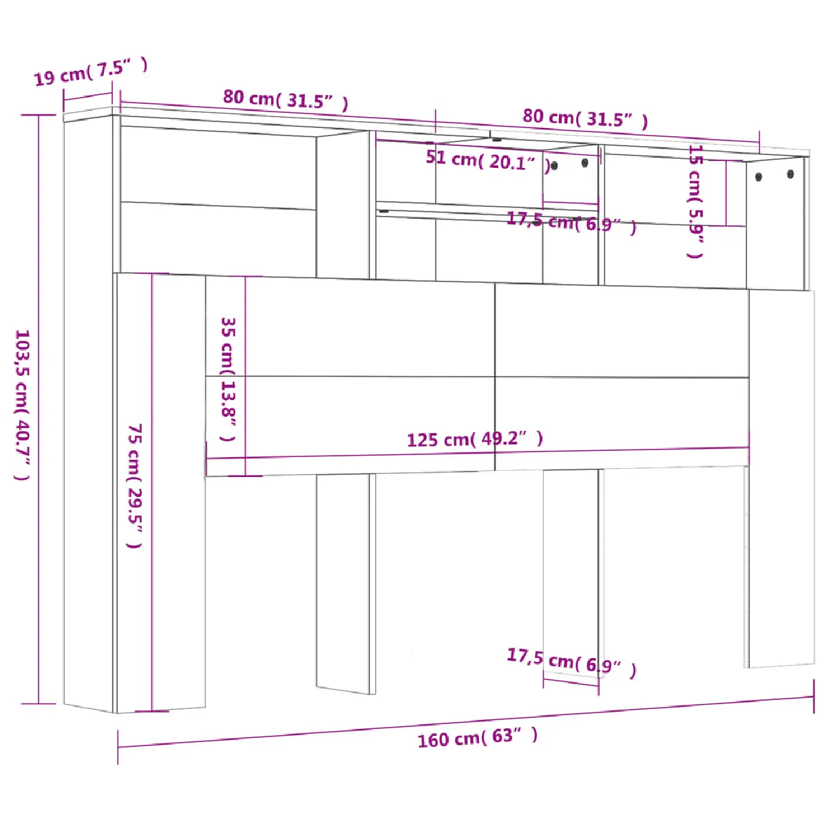 Armoire de tête de lit - Bois d'ingénierie - Rangement intégré - Dimensions : 160 x 19 x 103,5 cm - Assemblage requis