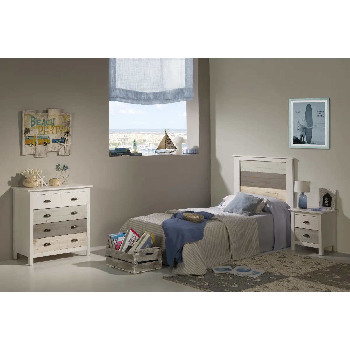 Tête de lit en pin bicolore pour lit 90 cm