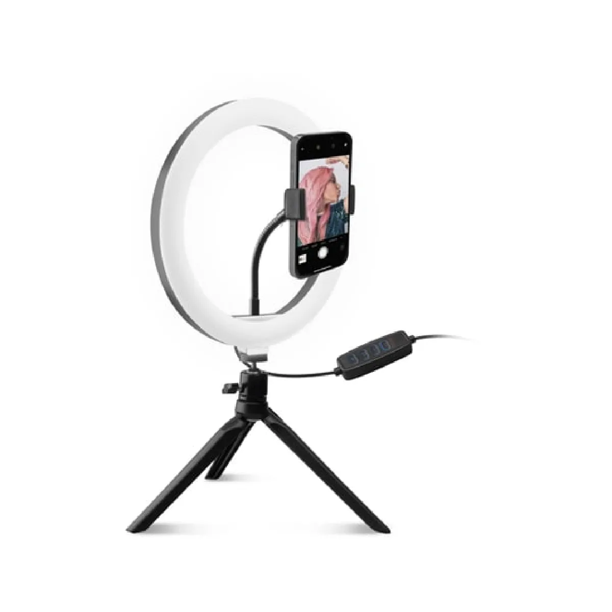 Perche à selfie - Anneau lumineux 20cm - Trépied - USB - Télécommande incluse