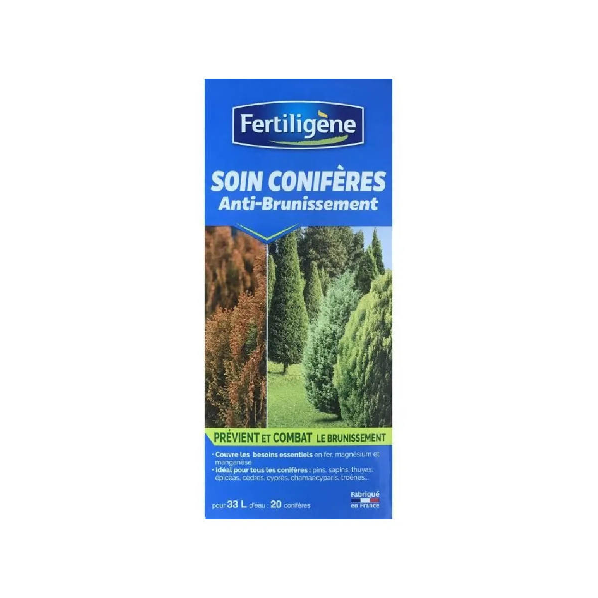 Permet de lutter contre les carences responsables du brunissement des coniferes - Idéal pour tous les coniferes : pins, sapins, thuyas, épicéas, cedres, cypres, chamaecyparis,troenes - Double action : préventif et curatif - S'utilise en arrosage au pied des coniferes ou en pulvérisation sur les coniferes - Surface traitée/dosage : 20 coniferes - Informations réglementaires : Engrais CE Solution de sulfate de magnésium contenant du Fer et du Manganese.