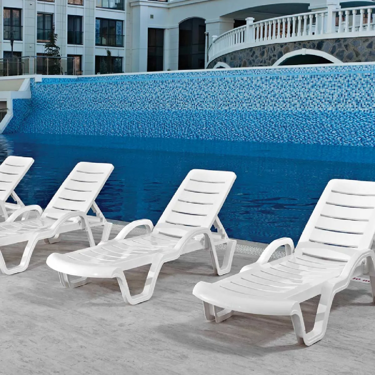 Le lot de 18 bains de soleil offre une solution homogène pour les piscines publiques et les espaces hôteliers, avec une structure en plastique haute résistance adaptée aux extérieurs. Chaque transat blanc dispose d'un dossier multipositions et se plie aux besoins d'usage intensif. L'ensemble est pensé pour équiper efficacement de grandes zones aquatiques, tout en conservant une esthétique simple et coordonnée. La conception empilable facilite l'organisation saisonnière, et les roues intégrées permettent de déplacer aisément les unités selon l'affluence. Le format par 18 optimise l'installation de rangées alignées ou de zones détente, avec une cohérence visuelle et fonctionnelle immédiate.