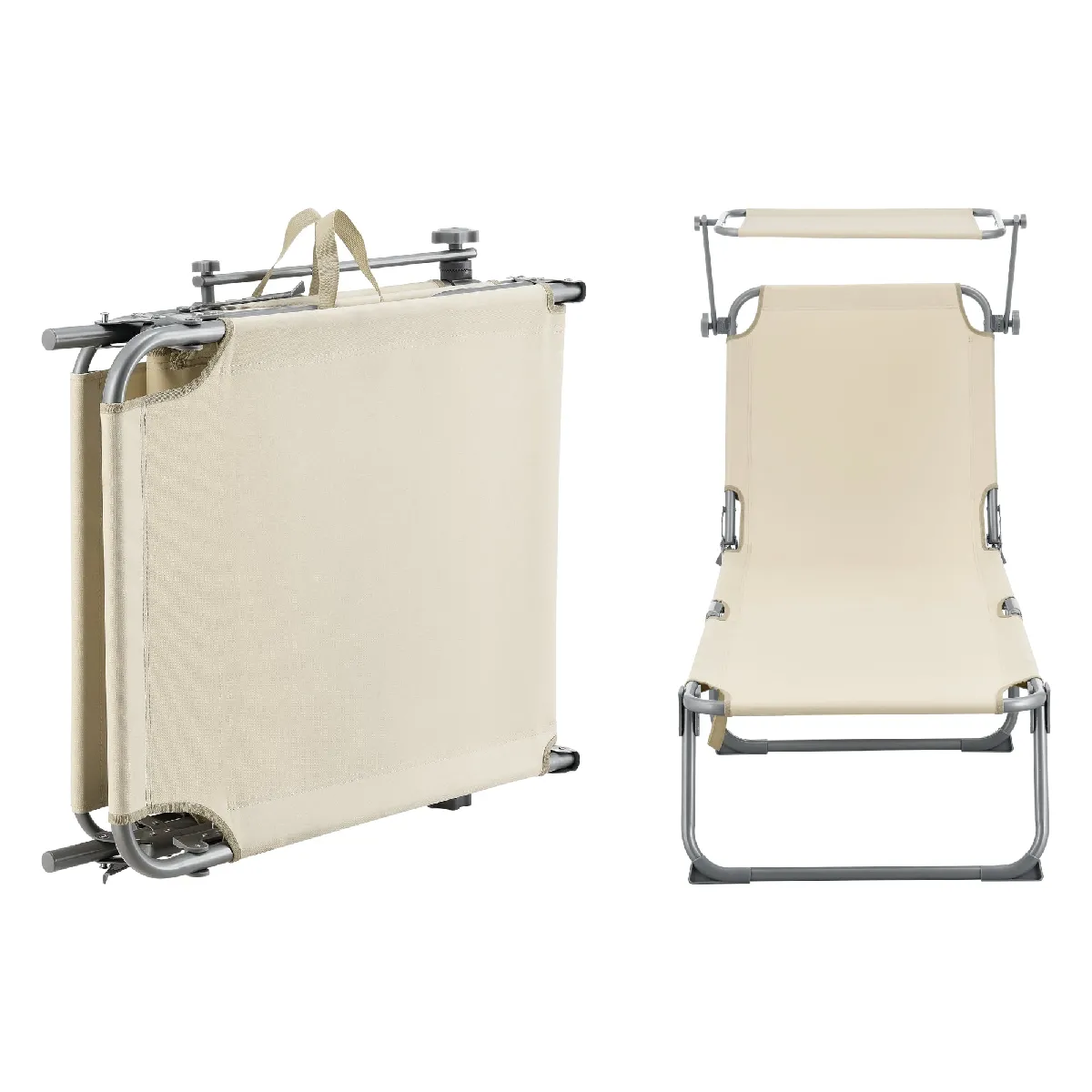 helloshop26 Transat avec pare-soleil - Acier Polyester Beige