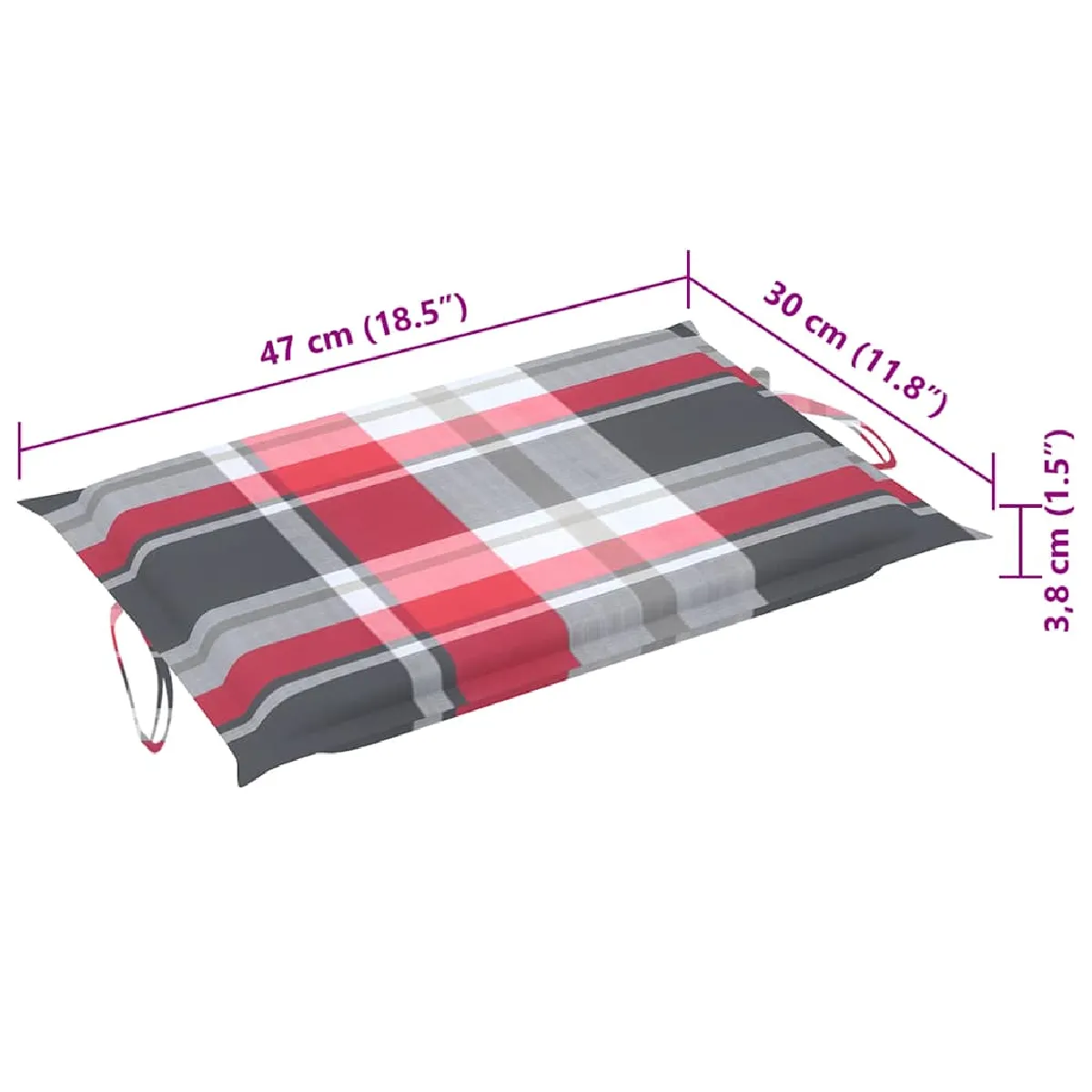 Lot de 2 chaises longues en acacia - Coussins à carreaux rouges - Pliables pour rangement facile