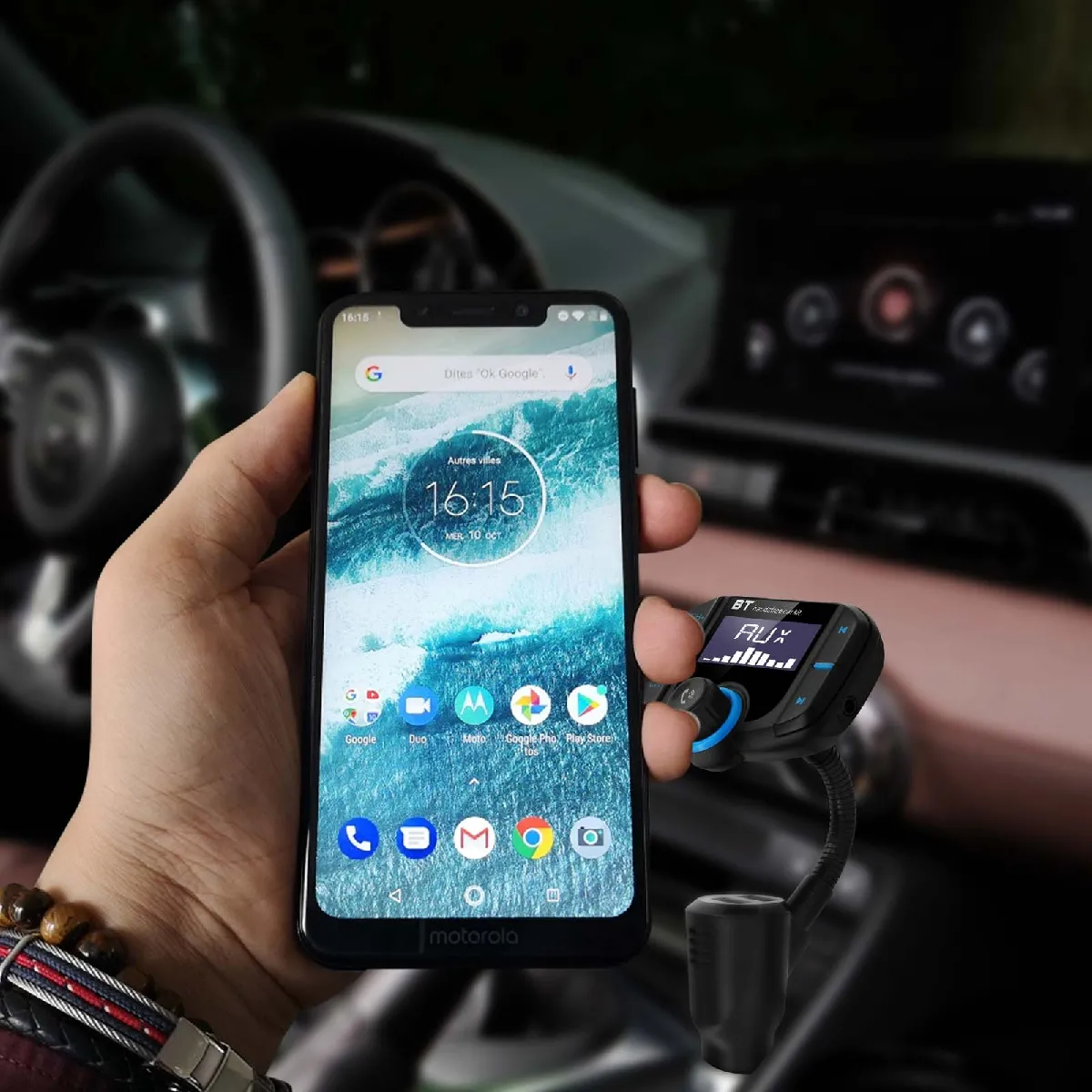 Kit main libre Bluetooth pour recevoir des appels, écouter de la musique ou suivre le guidage GPS depuis votre autoradio. Kit main libre directement lié à la prise allume-cigare. Cordon flexible et orientable à souhait . Télécommande incluse
