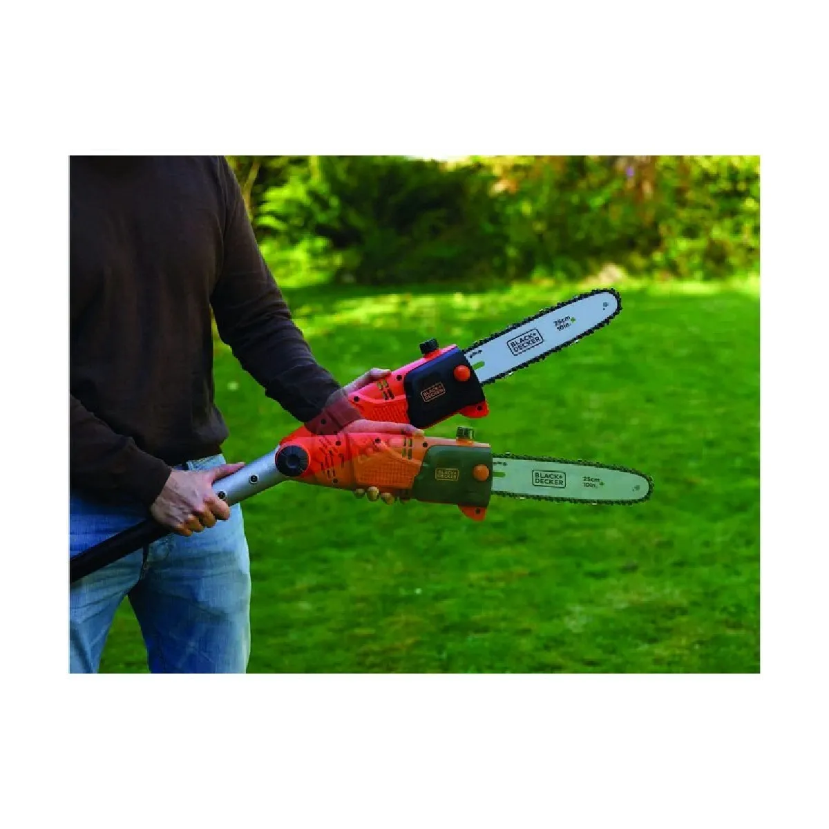 Elagueur sur perche électrique - Moteur puissant : 800 W - Chaine rapide : 11 m/sec - Tete pivotante 3 positions : 0/15/30° - Manche télescopique : 1,74 m a 2,44 m : pour couper et élaguer les branches les plus hautes - Grande capacité de coupe : pour branche jusqu'a 17 cm de diametre - Frein de chaîne instantané.