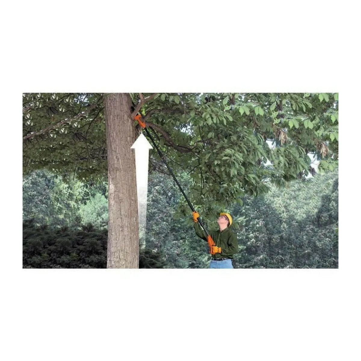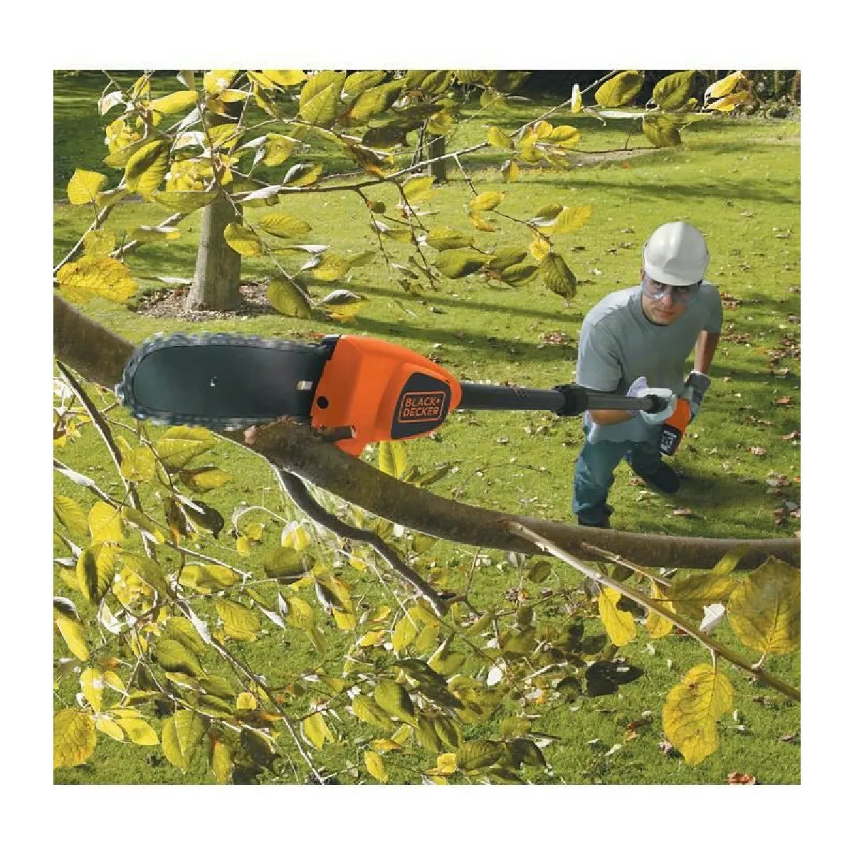 Equipé d'un guide de tronçonnage de 20 cm Coupe 130 branches de 3,5 cm de diametre par charge Manche extensible de 1,74 m a 2,92 m Chaîne chromée anti-rebond prémontée sur le guide Poids 3,5 kg Compatible avec batterie Lithium Slide-Pack 18V BLACK+DECKER