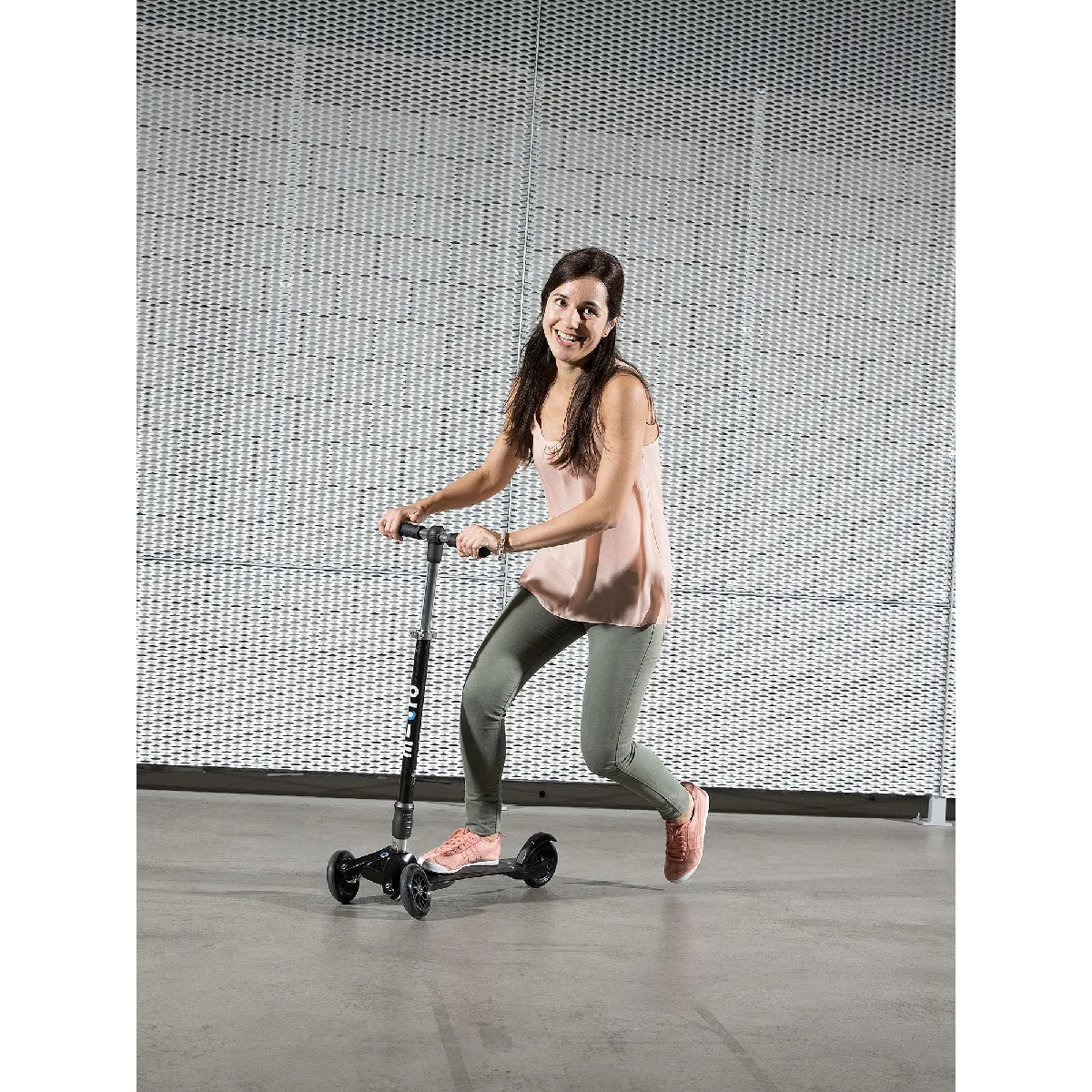 La kickboard Compact Noir se distingue dans cette gamme par une planche en aluminium un peu plus courte, et un poids plus léger.