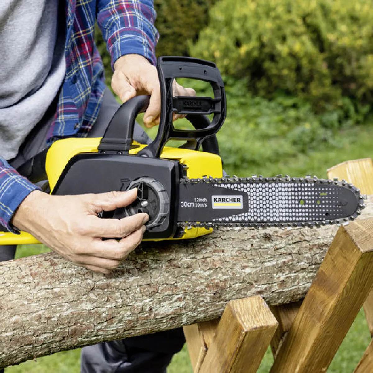 pstrongKarcher - Tronçonneuse 18V sans batterie ni chargeur Longueur de lamier 30 cm 45 maillons - CNS 18-30/strongbrAvec son faible poids et sa longueur de lamier idéale, la tronçonneuse sans fil CNS 18-30 Battery de Kärcher est parfaite pour une utilisation confortable et variée lors de l'entretien des arbres. Grâce à la vitesse hors pair de la chaîne, les travaux de coupe s'effectuent rapidement et sans efforts. Avec le système de tension de chaîne sans outils et la lubrification automatique de la chaîne, la tronçonneuse sans fil est très facile à utiliser. La combinaison du frein de chaîne et du double déverrouillage la rend particulièrement sûre. Inclus : l'outil, le lamier, la chaîne, la protection de lamier et un flacon d'huile.brLes avantages de cette tronçonneuse Karcher CNS 18-30 sont :br- Tension de la chaîne sans outilsbr Tension de la chaîne sans efforts à l'aide d'un bouton tournant.br- Graissage de la chaîne automatiquebr Pour une utilisation à faible entretien de la tronçonneuse sans fil.br- Protection anti-reculbr La chaîne s'arrête immédiatement – pour une sécurité maximale en cas d'effet de recul.br- Griffebr Guidage sûr et coupes précises en fixant la tronçonneuse sur la matière à couper.br- Vitesse hors pairbr Vitesse de la chaîne de 10 m/s – pour des travaux de coupe rapides.br- Applications variéesbr Le lamier de 30 centimètres permet diverses utilisations.br- Déverrouillage de sécuritébr Empêche tout démarrage involontaire de la tronçonneuse.br- Réservoir d'huile transparentbr Le niveau d'huile peut être contrôlé à tout moment à travers une fenêtre transparente.br- Moteur sans balaisbr Pour une autonomie plus longue et une meilleure durée de vie de l'outil.br- Plateforme de batterie Kärcher Battery Power 18 Vbr Technologie temps réel à afficheur LCD pour la batterie : autonomie restante, durée de charge restante et capacité de la batterie.br Durable e