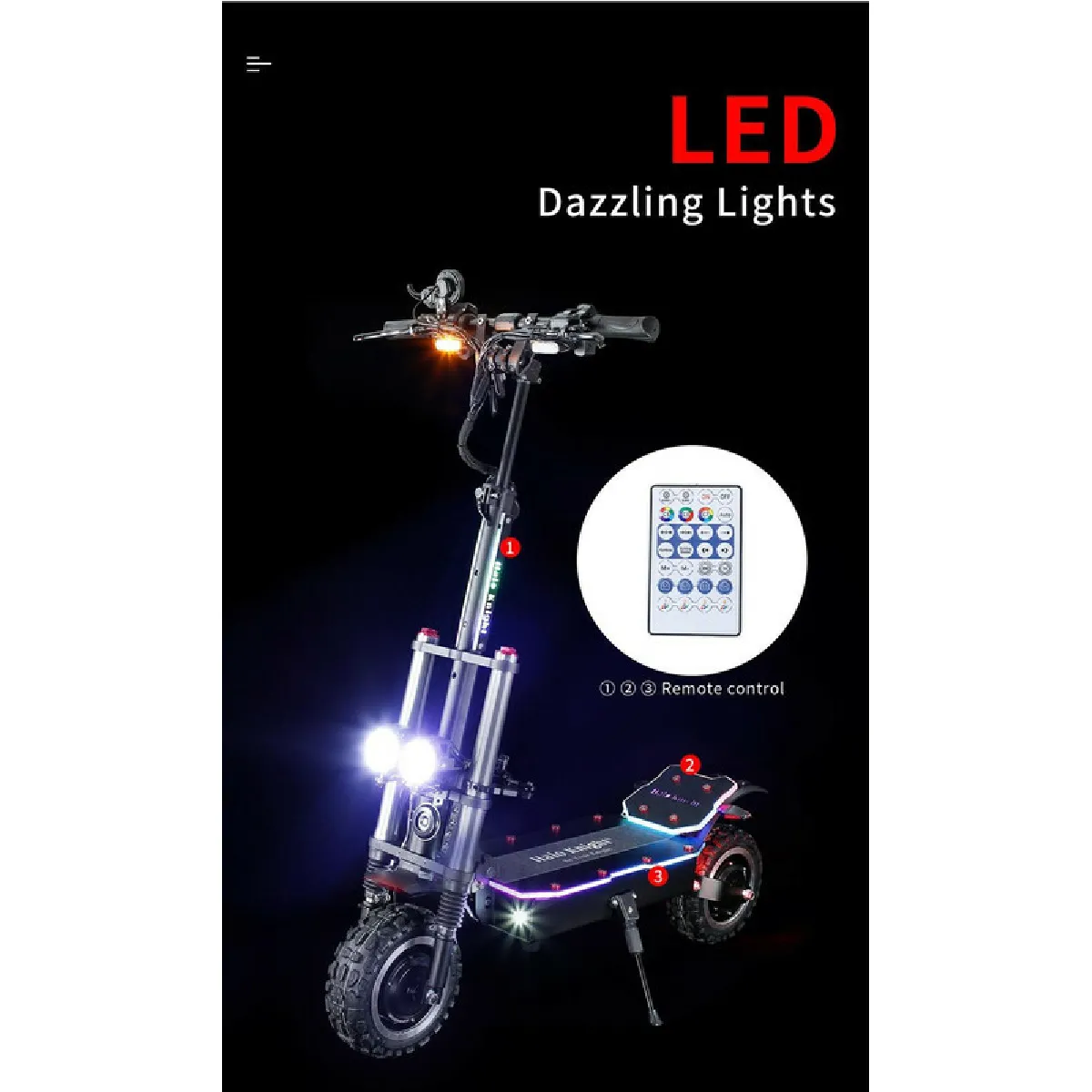 Trottinette électrique - Double moteur 3000W - Pneus 11 pouces - 95km/h - 80km autonomie