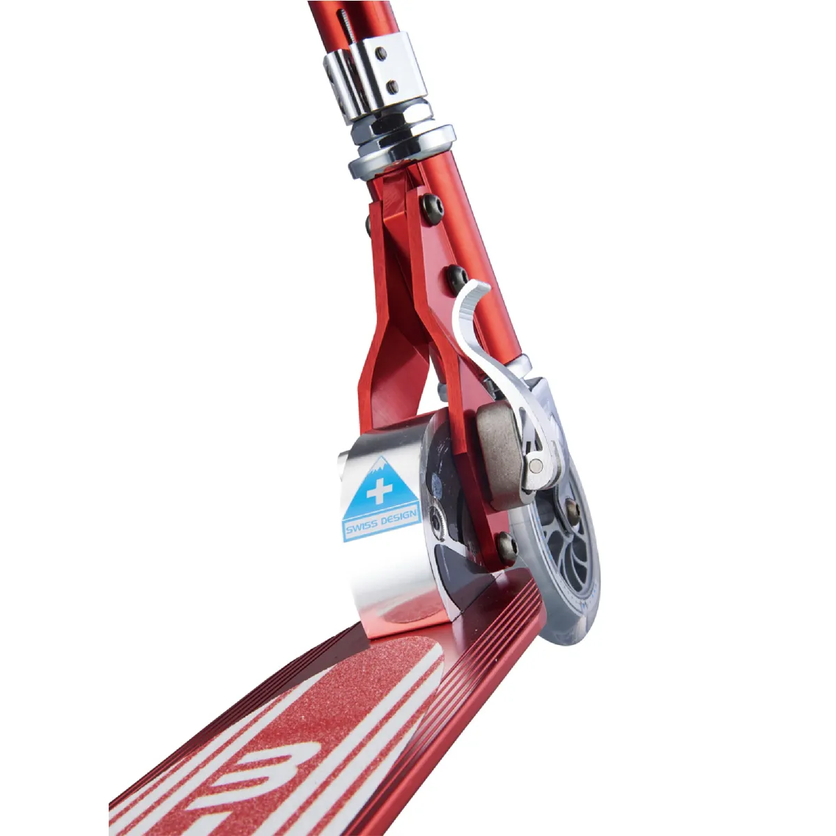 Le freinage de cette trottinette se fait à l'aide du frein situé à l'arrière de la planche. Celui-ci enveloppe la roue arrière, il suffit d'appuyer légèrement avec votre pied pour arrêter cette trottinette Micro.