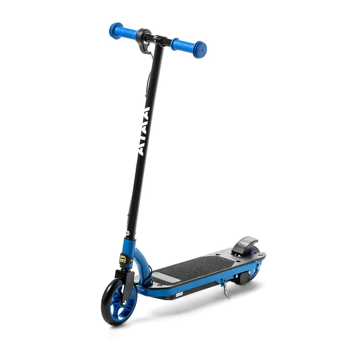 Trottinette enfant 12v avec plateau antidérapantAvec le cadre et le guidon en acier, cette trottinette électrique est super résistante et durable, tandis que les roues en PU promettent une bonne adhérence sur diverses surfaces. D'autre part, les poignées en caoutchouc offrent une prise en main confortable. La trottinette à batterie E-Swift devient une option sécuritaire grâce à sa plateforme antidérapante et sa béquille pour un support facile.La trottinette électrique pour enfants E-Swift convient aux enfants âgés de 6 ans et plus et constitue un excellent moyen d'encourager le plaisir en plein air. Et pas seulement, ce scooter offre une conception robuste et résistante. L'aventure sur roues attend vos petits avec la trottinette pour enfants E-Swift !Principales caractéristiques de la trottinette électrique pour enfants E-Swift :- Marque : ATAA- Modèle : E-Swift- Batterie : 12 V 5,0 Ah.- Moteur : 80w.- Roues en PU (145 mm à l'avant ; 120 mm à l'arrière).- Cadre et guidon en acier.- Poignées en caoutchouc.- Bouton pour allumer le scooter.- Bouton de contrôle de vitesse.- Pédale de frein arrière.- Plateforme antidérapante.- Béquille- Chargeur avec lumière LED.- Vitesse maximale : 8-10 km/h.- Autonomie maximale : 6 km/h.- Assemblage requis.- Âge recommandé : environ 6 ans et plus.- Poids maximum : 50 kg.- Poids de la trottinette : 6 kg.- Dimensions du scooter : 73x33,5x83 cm.ATAA recommande de porter des équipements de protection adaptés à la pratique de la trottinette (casque, genouillères et coudières).La plupart des accidents surviennent au cours des premiers mois de pratique : nous vous recommandons de prendre votre temps pour apprendre à manier la trottinette et être capable de contrôler la vitesse et le freinage en cas d'urgence et par tous les temps (surtout sur sol mouillé).