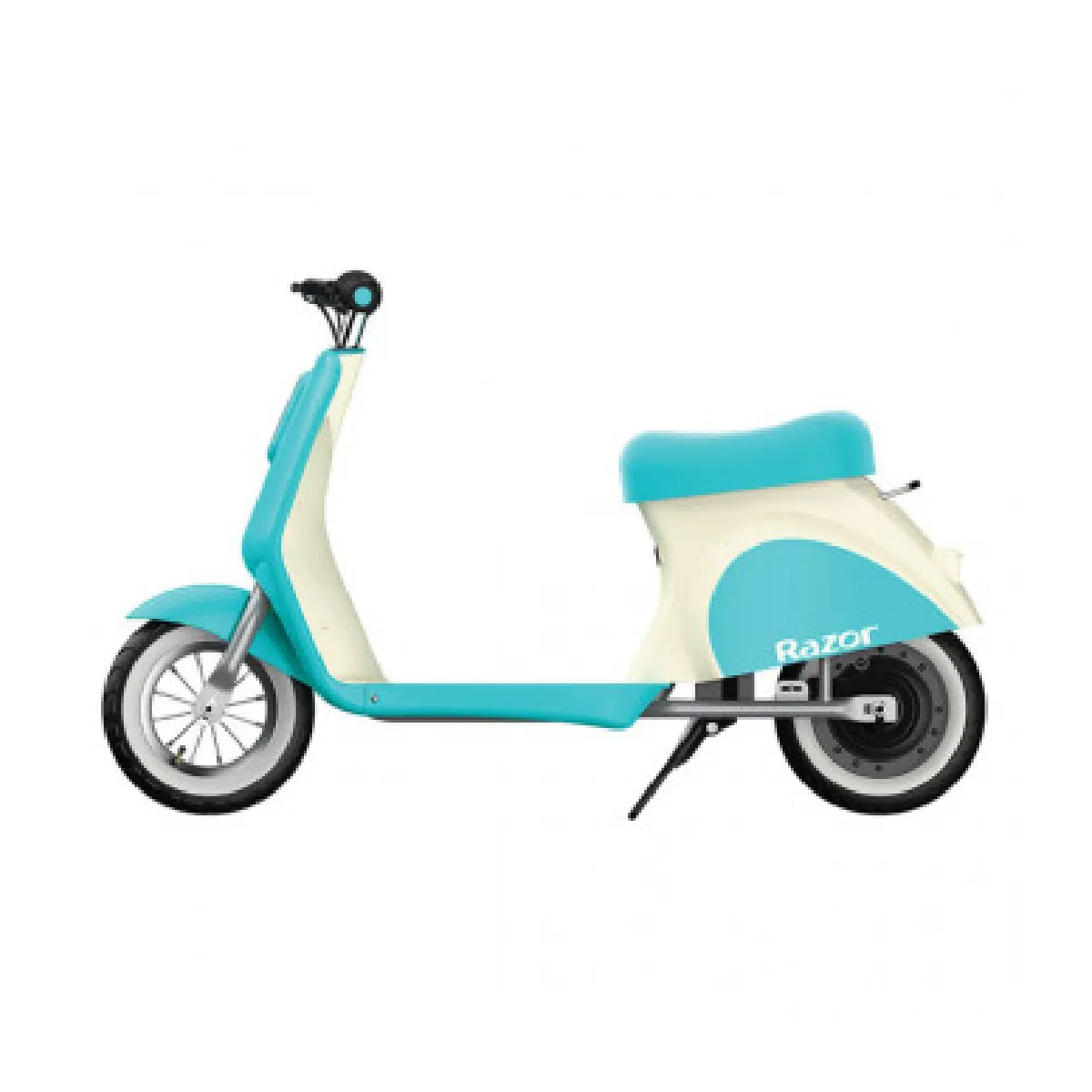 Le Pocket Mod Petite est le plus petit scooter électrique miniature Eurostyle de Razor, conçu pour les jeunes cyclistes de 7 ans et plus et est complètement 'à la mode'. Le moteur à moyeu de 100 watts Power Core de Razor offre des vitesses allant jusqu'à 13 km/h et la batterie rechargeable de 12 V offre jusqu'à 40 minutes de temps de conduite continu sur une seule charge. Avec la carrosserie bicolore couleur bonbon, les pneus blancs de 255 mm, le siège rembourré assorti, l'accélérateur à poignée tournante et le frein à main, la conduite sur ce mod de poche d'inspiration vintage est aussi douce qu'élégante.