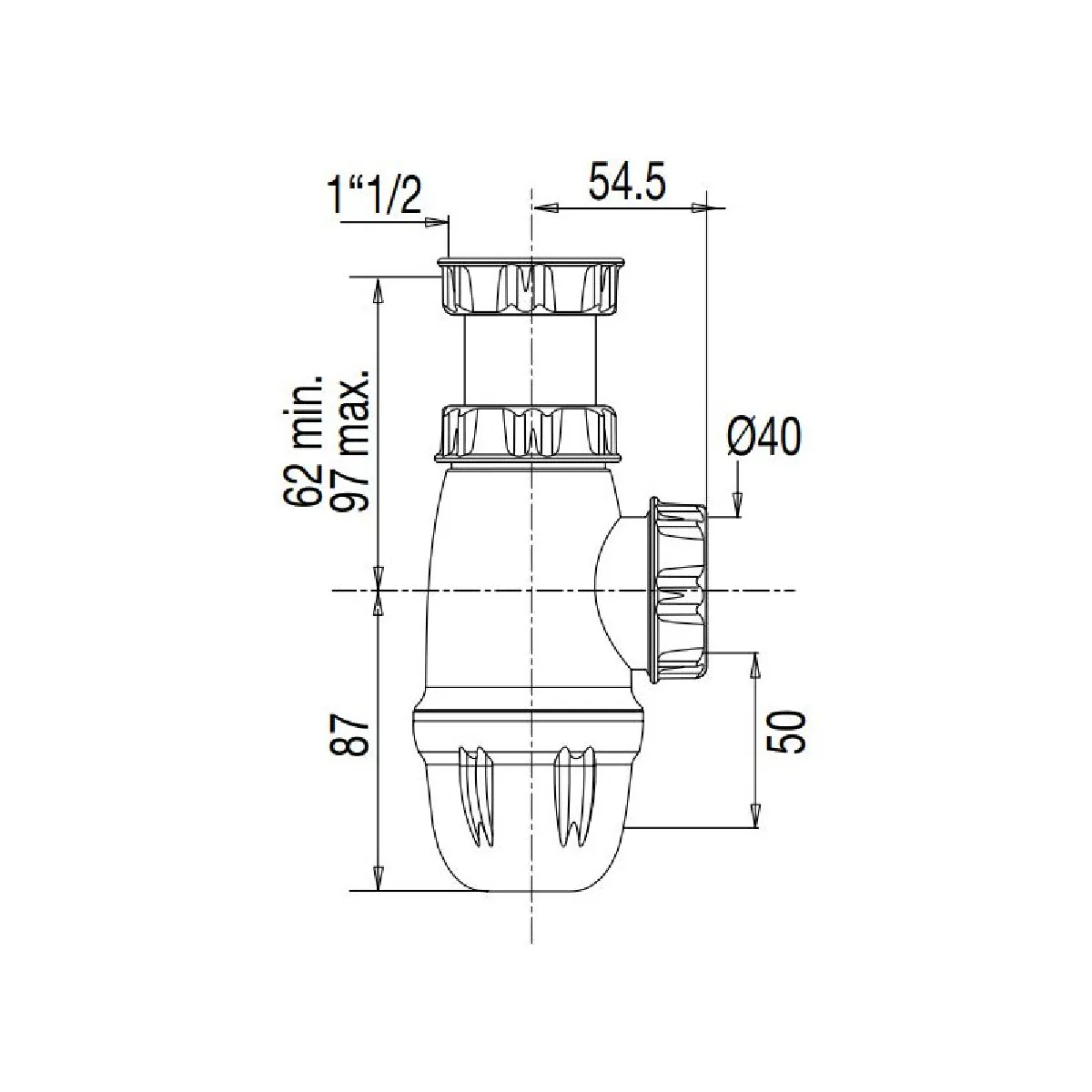 Siphon d'évier - Culot démontable - 40 x 49 mm - Réglable - Plastique