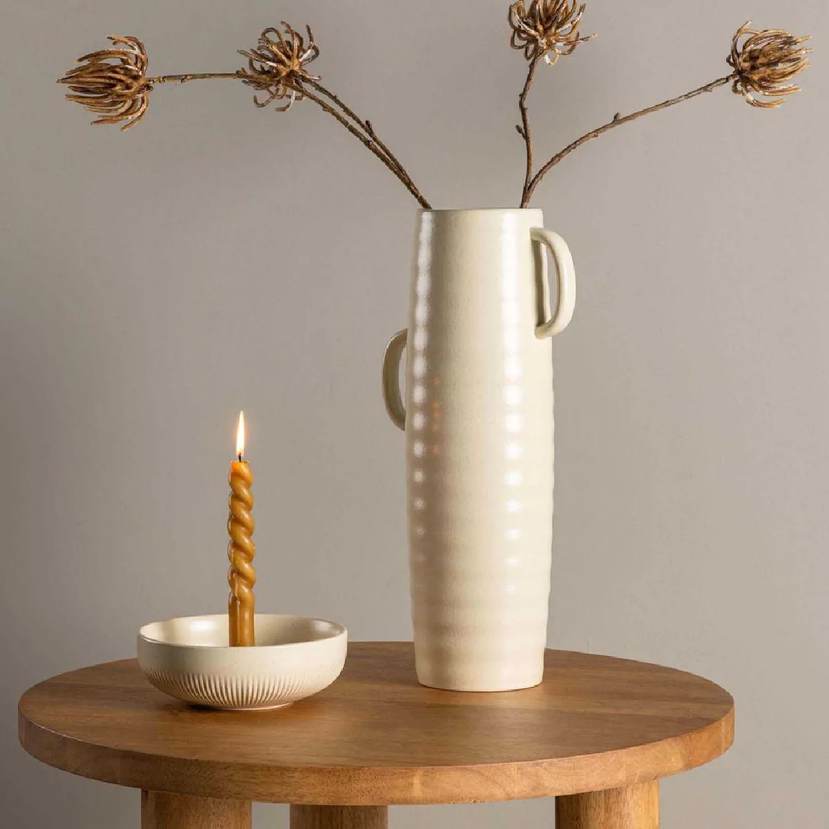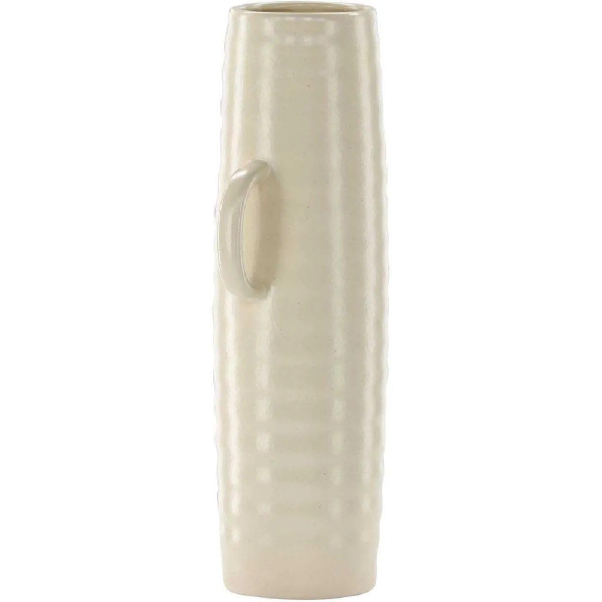 Vase en grès - Design simple - Beige et noir - 41 cm de hauteur