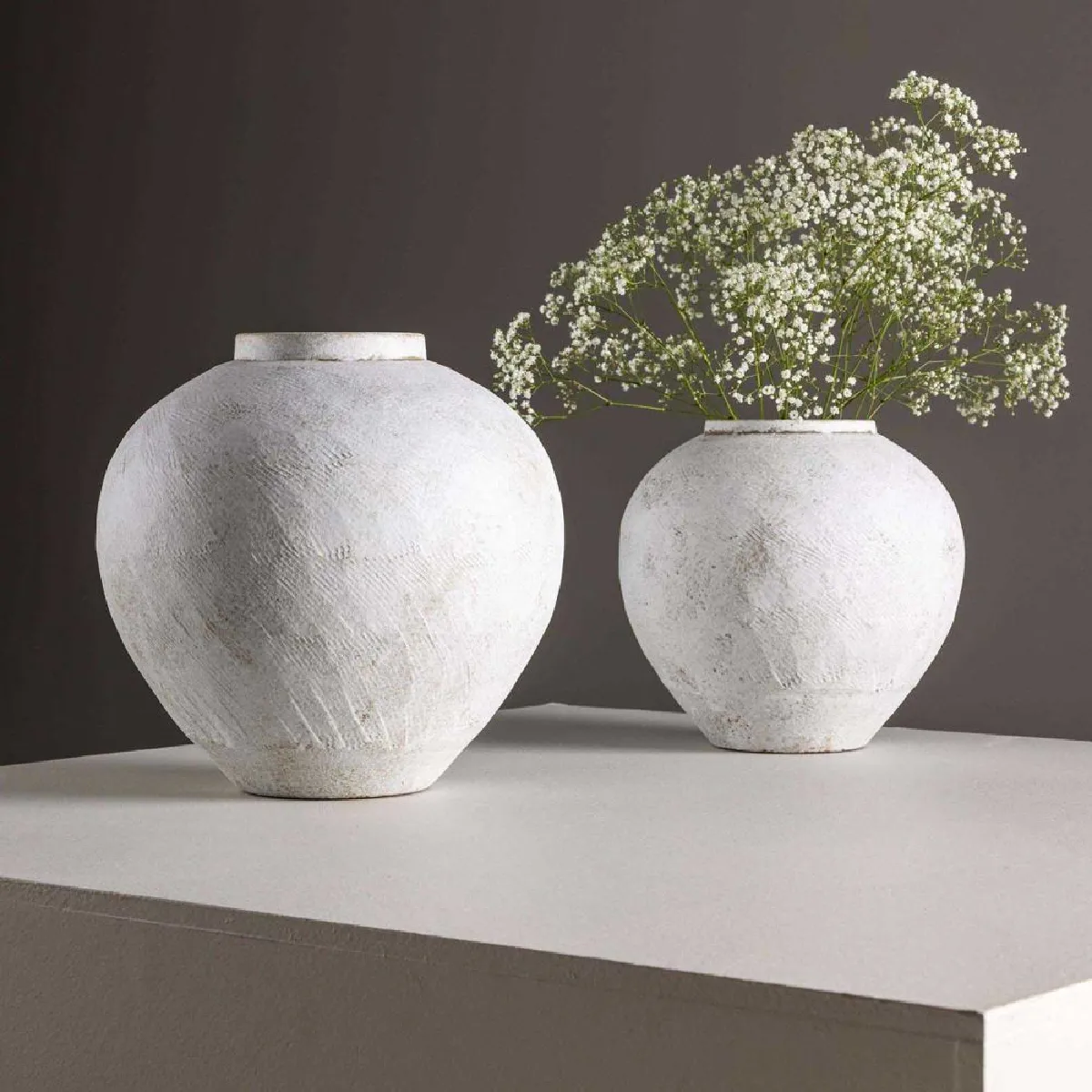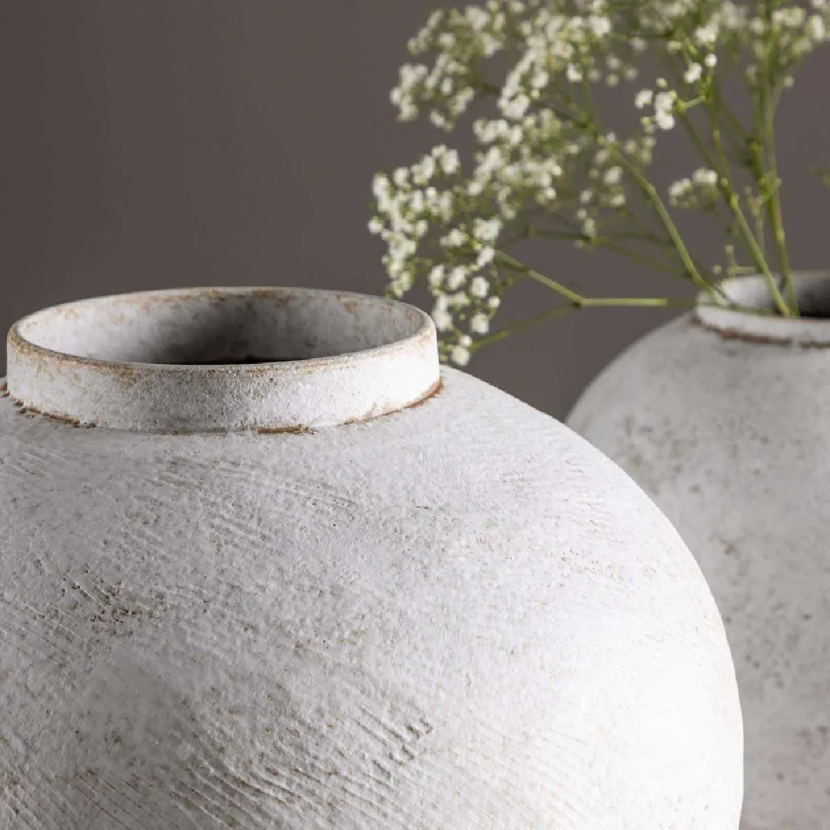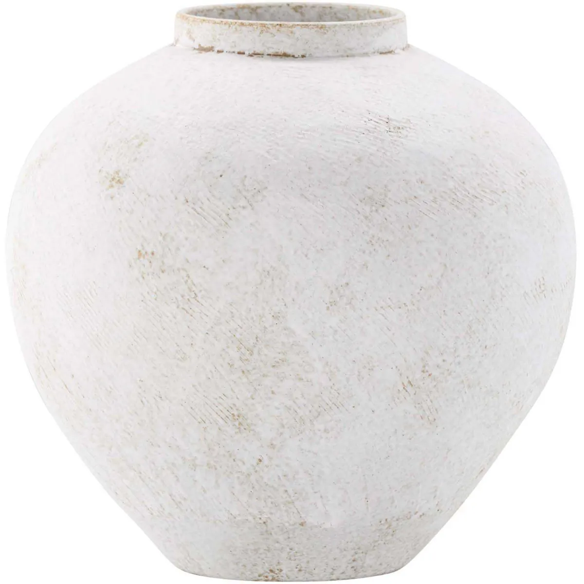 Vase en grès - 28 x 29 cm - Design rond - Couleur beige