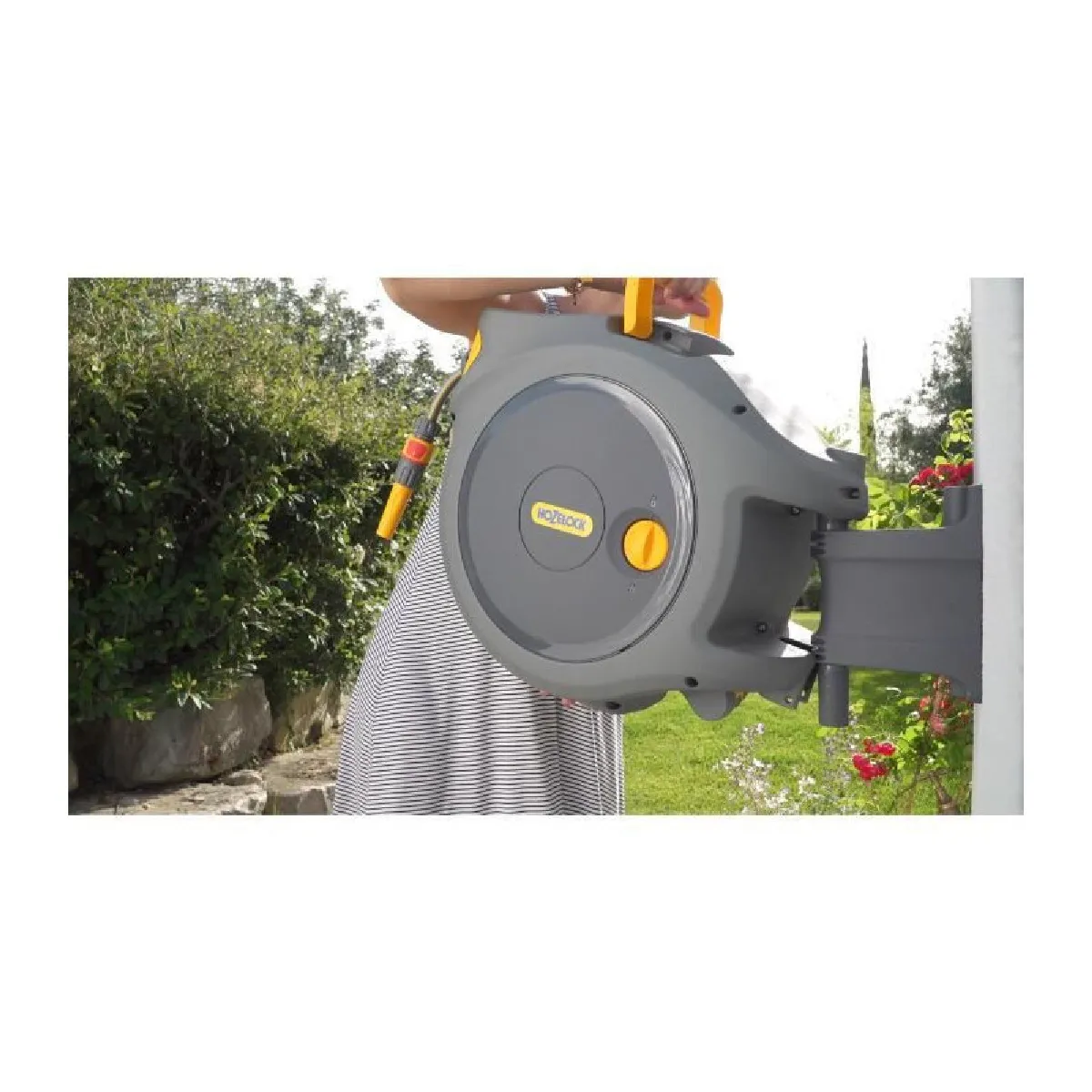 Le dévidoir automatique AUTO REEL de Hozelock permet un montage mural avec mécanisme de pivotement à 180 ° pour faciliter l’arrosage des différentes zones du jardin. Un ressort puissant rétracte automatiquement le tuyau, sans vrillage, sans nœuds et sans effort.Caractéristiques techniques :Type : dévidoir carénéFormat : fixation muraleEnroulement du tuyau : automatiqueMatériau : plastiqueDomaines d'utillisation :ArrosageDévidoirs automatiquesSystèmes de rangement de tuyaux
