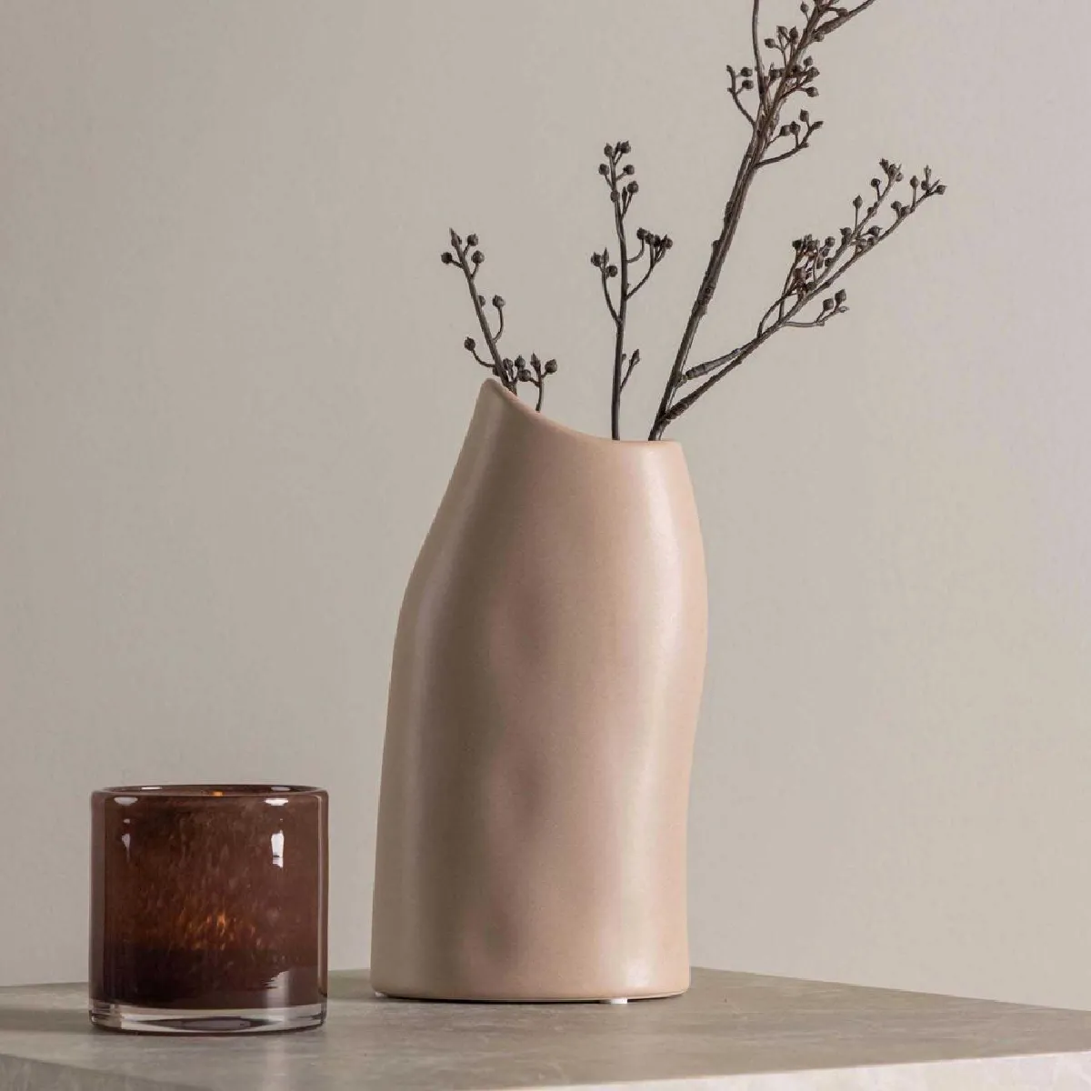 Vase en grès - Couleur rose clair - Design chic - 23 x 12 x 9 cm