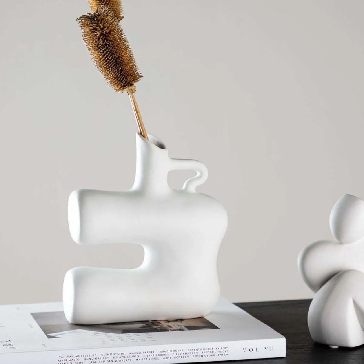 Commentaire vendeur : Informations Techniques : Dimensions : L. 18 x l. 17 x H. 19 cm Matière : Grès Spécificités : Moderne & Original Vase design Avec petite anse Ouverture étroite Poids : 0,65 kg Couleur : Blanc
